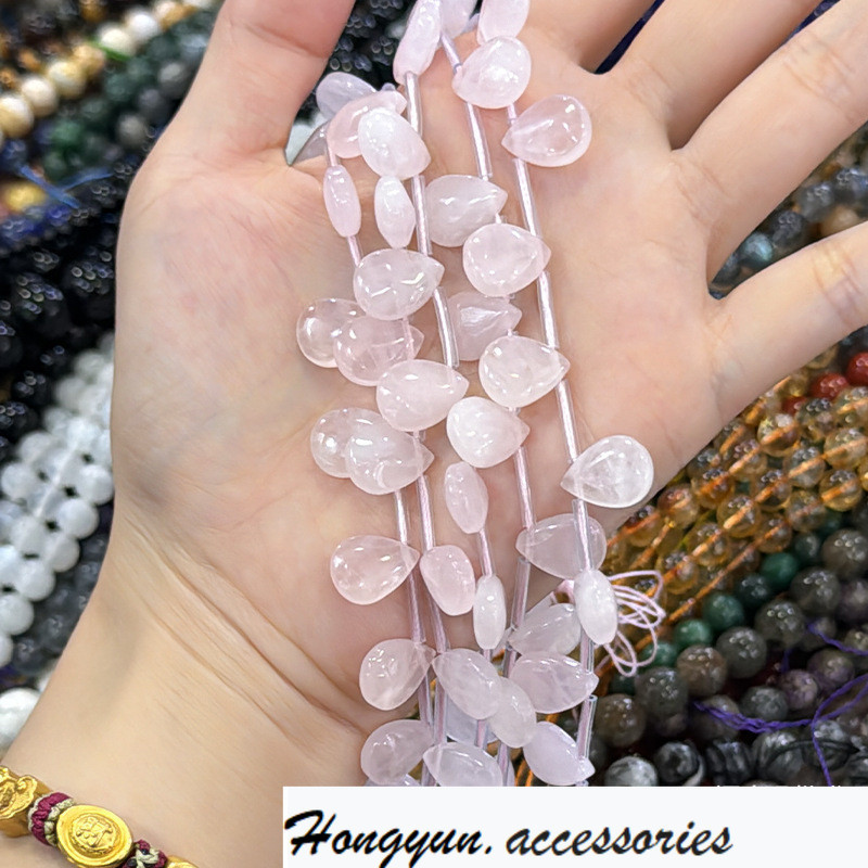 宏雲Hongyun-ew–Diy配件10*14mm切面水滴天然水晶粉水晶馬拉加西粉晶散珠串珠水滴形马粉,一串38cm/24颗左右HongYun飾品配件批發零售