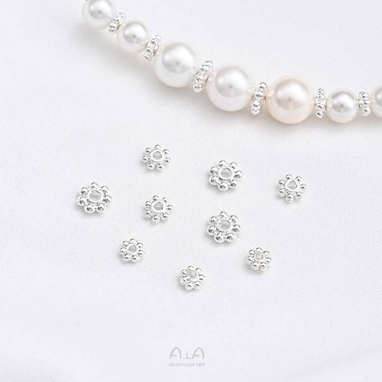 宏雲Hongyun-Ala新品-保色鍍925厚銀雪花片銀色隔珠片手工串珠隔珠配件diy手作飾品資料4mm銀色雪花片(10個)|5mm銀色雪花片(10個)|6mm銀色雪花片(10個)HongYun飾品配件批發零售
