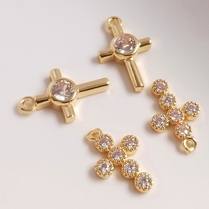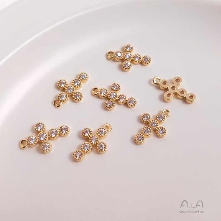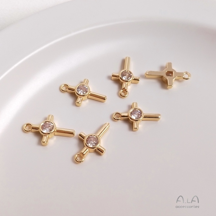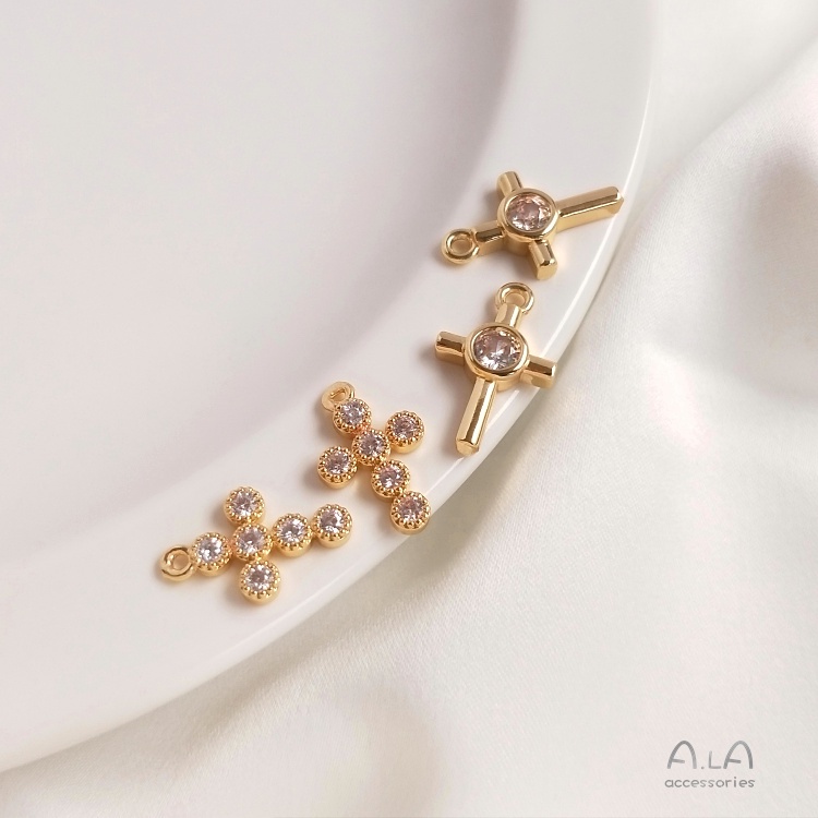 宏雲Hongyun-Ala–14K包真金色保色鑲嵌鋯石十字架吊墜手工diy手鏈鎖骨鏈飾品掛墜配件16.5x10mm單顆大鋯十字架 1個|14.5x9mm六顆鋯石十字架 1個OthersHongYun飾品配件批發零售