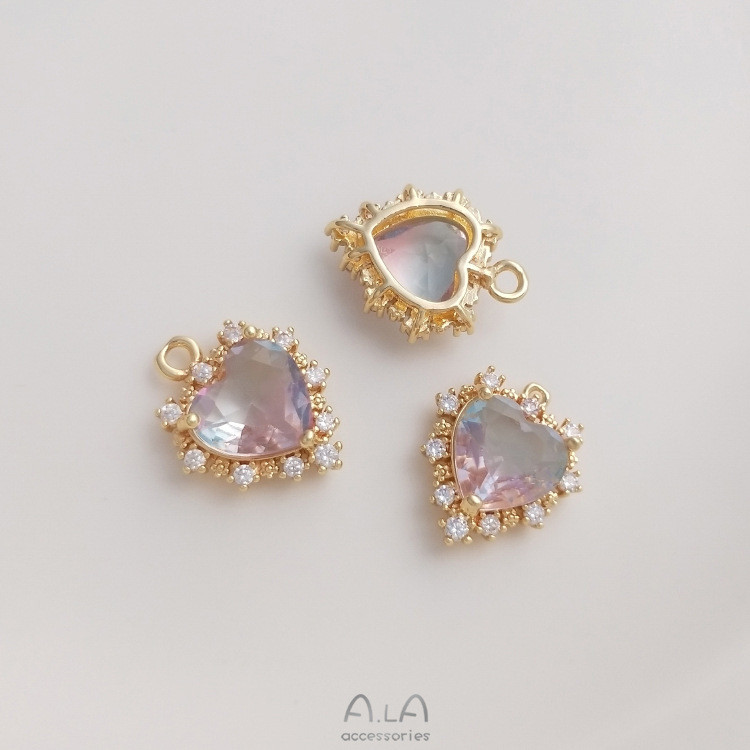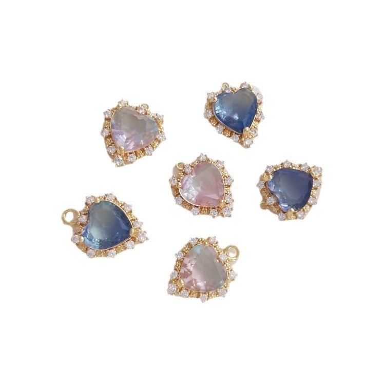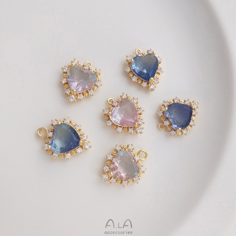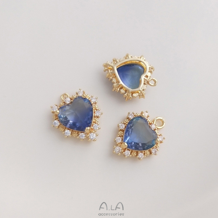 宏雲Hongyun-Ala新品-14k包金保色微鑲鋯石海洋之心吊墜碧璽色桃心掛件diy項鍊飾品吊飾海藍色微石海洋之心吊墜 1 個|色微石海洋之心吊墜 1 個HongYun飾品配件批發零售
