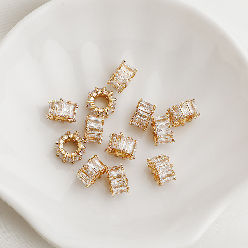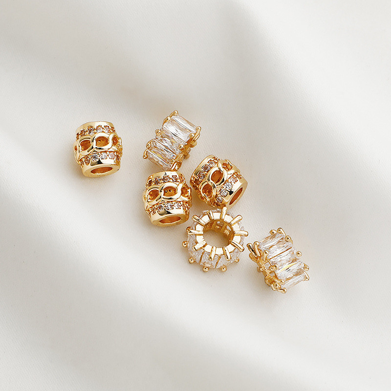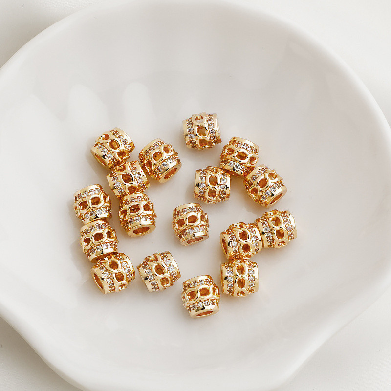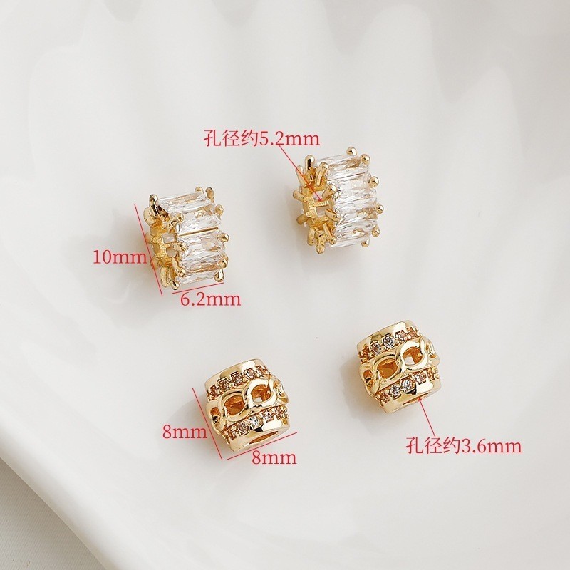 宏雲Hongyun-xs–14K包金保色鋯石8字鏤空大孔隔珠柱形車輪珠串珠編繩diy飾品配件14k色,8mm鋯石鏤空8字柱形隔珠|14k色,10mm梯方鋯石大孔車輪珠|白銀色,8mm鋯石鏤空8字柱形隔珠|白銀色,10mm梯方鋯石大孔車輪珠HongYun飾品配件批發零售