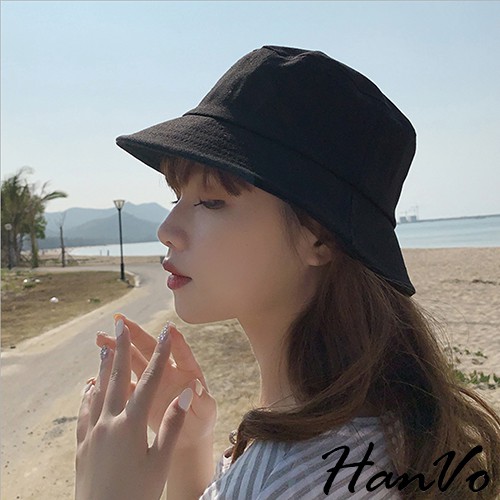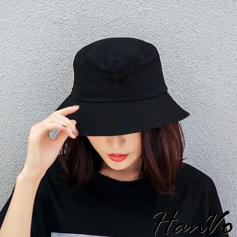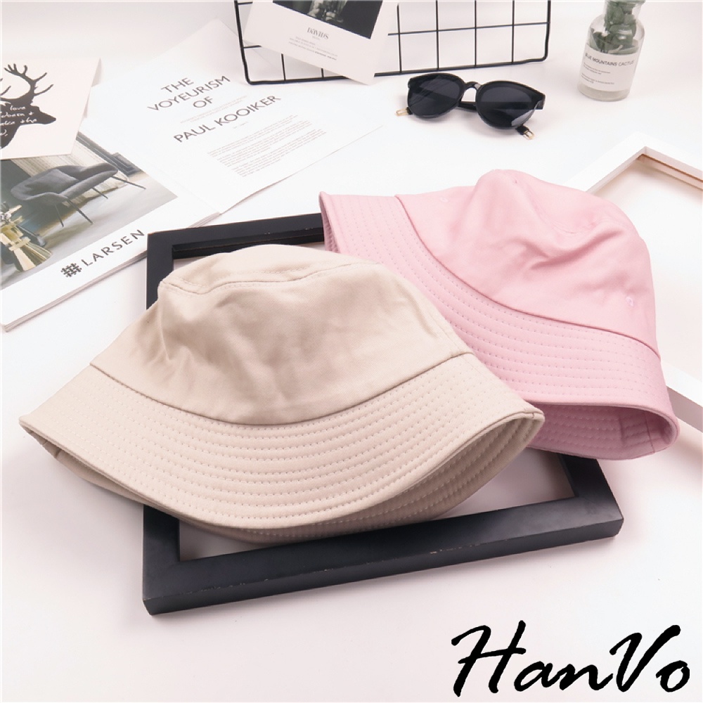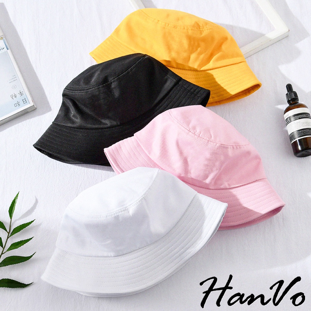 【HanVo】日系素色漁夫帽 男女可戴 簡約 百搭 素面 多色 防曬 帽子 遮陽 女生配件 女生衣著 C01-8106黑色|白色|黃色|粉色|米色HanVo Wear Collection