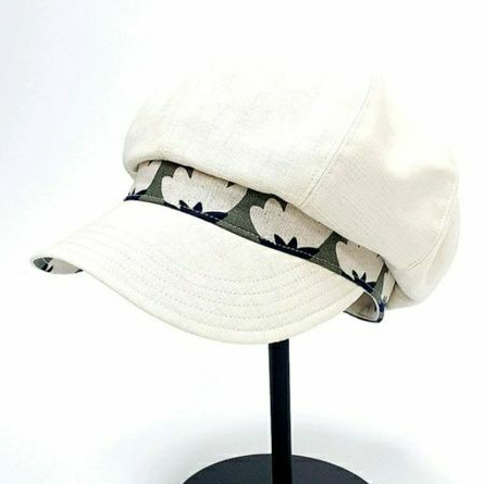 【HiGh MaLi】報童帽/日系拼布/寬帽沿/白色配木棉花 #日本布【HiGh MaLi】報童帽/日系拼布/寬帽沿/白色配木棉花 #日本布HiGh MaLi 瘋狂馬力/手創、設計、帽子