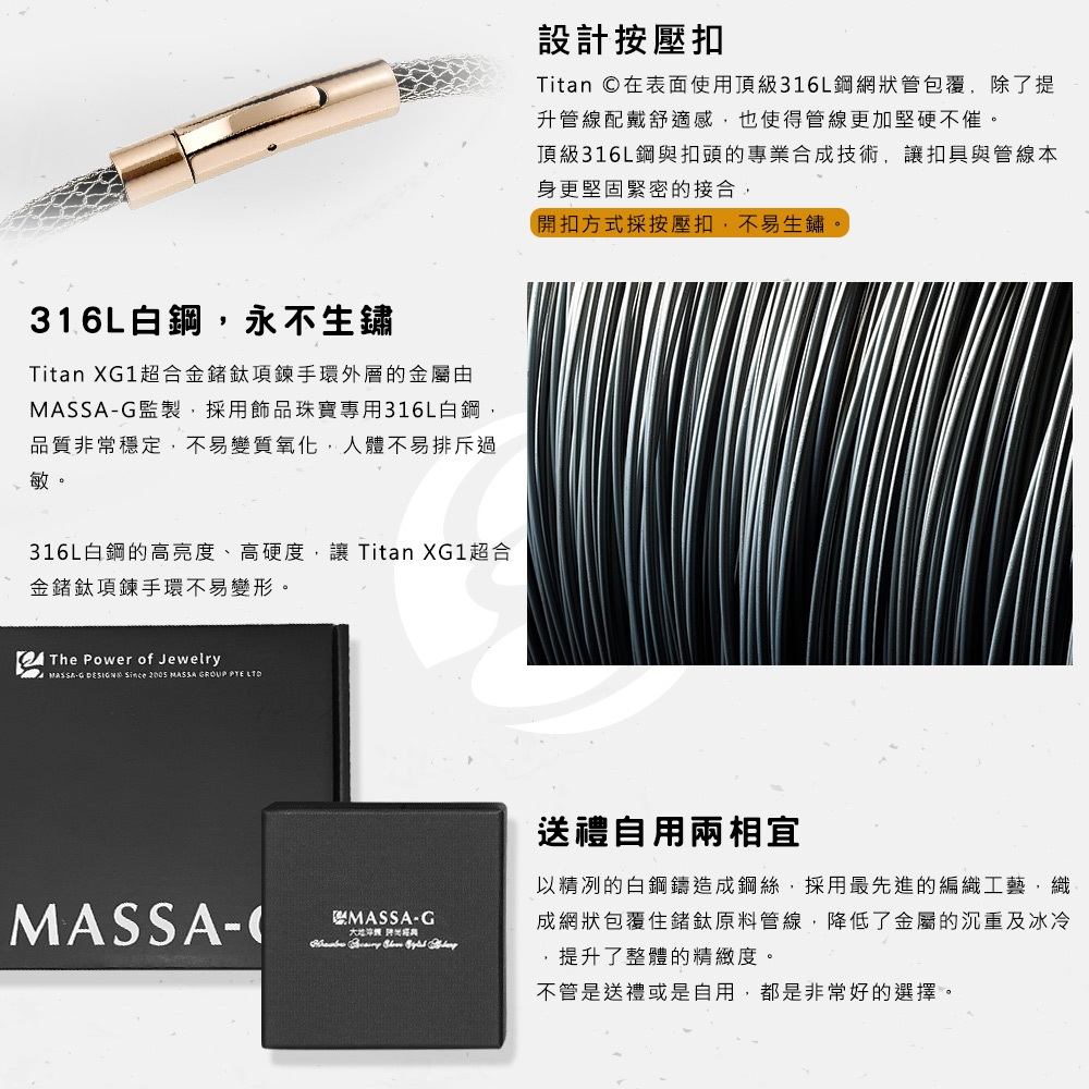 MASSA-G Titanium T05力量純鈦項鍊手環組(7mm粗)20cm|21cmMASSA–G鍺鈦能量精品