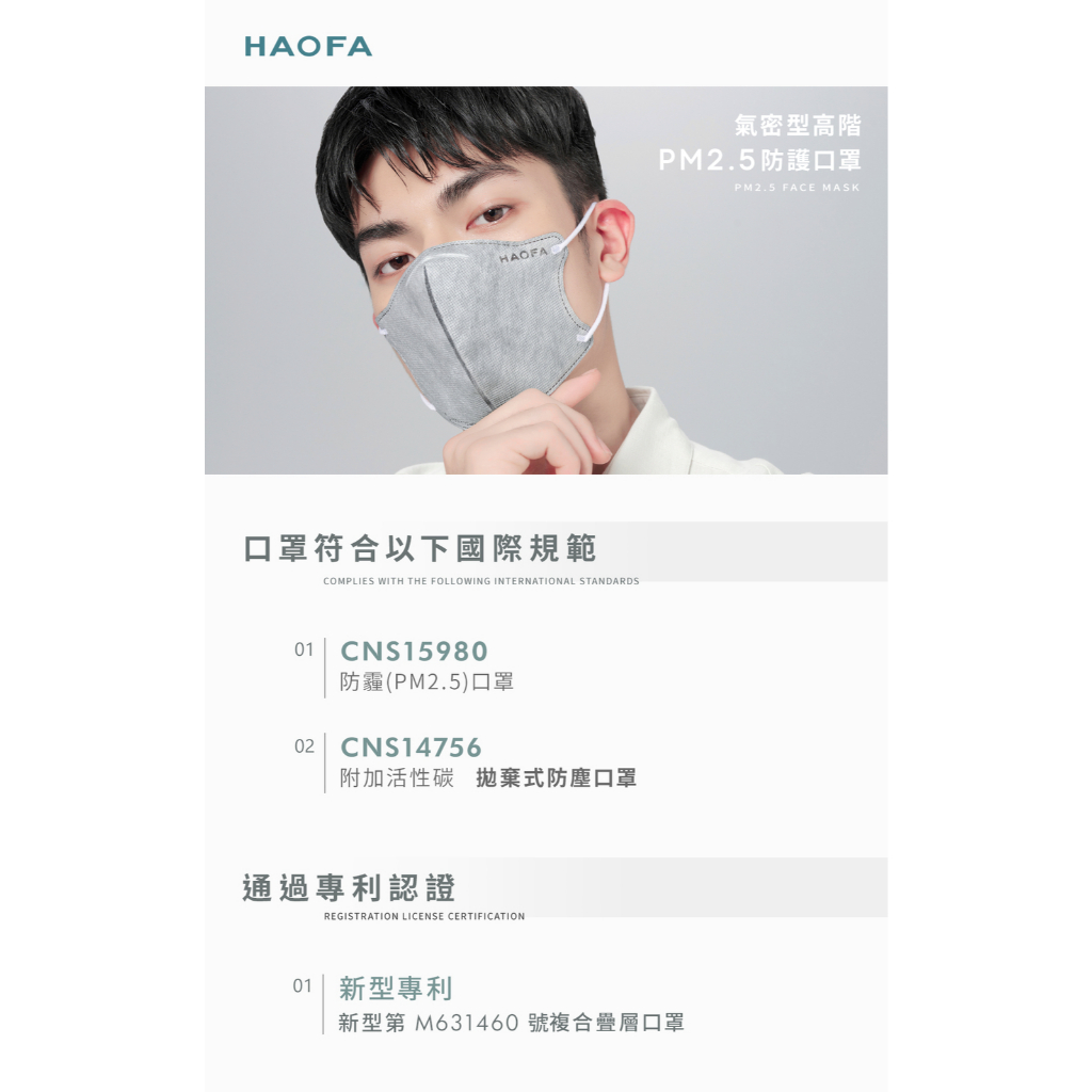 HAOFA氣密型高階PM2.5防護口罩-礫石碳(30入)M (標準成人)|L (大款成人)|S (小款成人)MasksHAOFA立體口罩