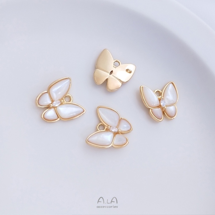 宏雲Hongyun-Ala–保色吊飾14K鍍金鋯石圓環蝴蝶吊墜手工diy手鏈耳環首飾品掛件配飾