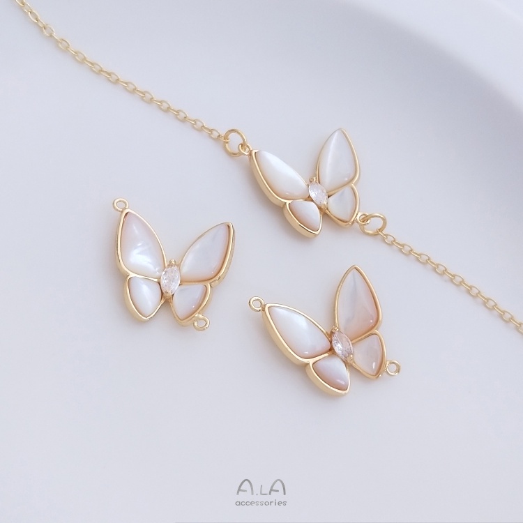 宏雲Hongyun-Ala–海彩貝雙吊蝴蝶吊墜14K鍍金保色鎖骨項鏈手鏈貝殼吊飾diy配件上下雙吊款 海貝蝴蝶1只|前后雙吊款 海貝蝴蝶1只OthersHongYun飾品配件批發零售