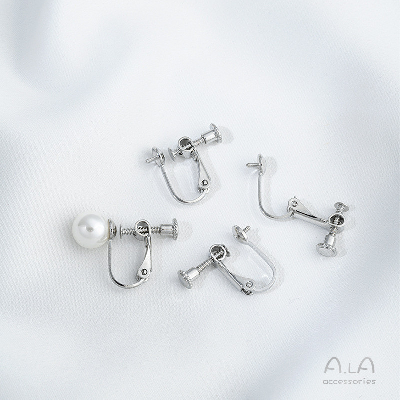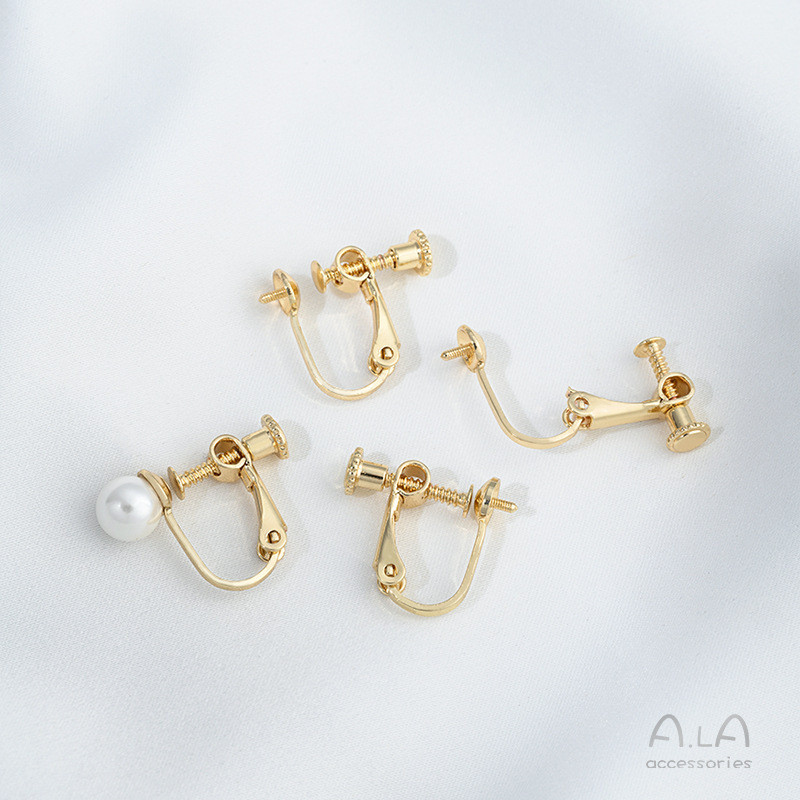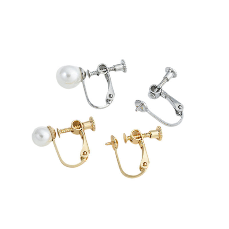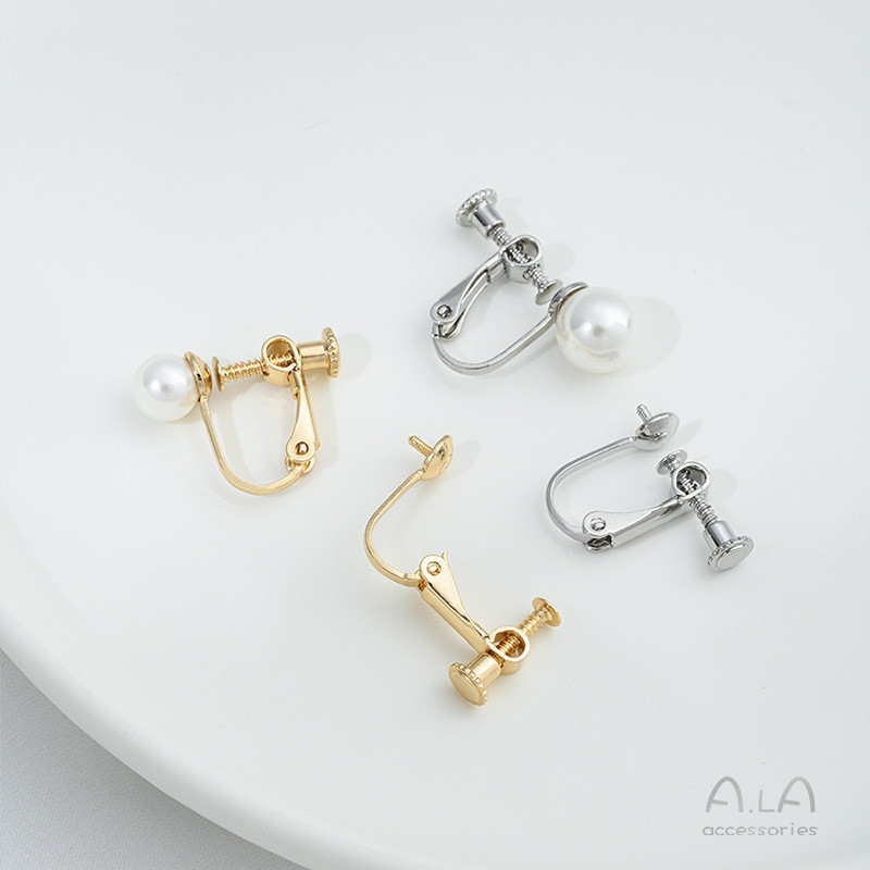 宏雲Hongyun-Ala新品-保色14K銅包真金半孔珠托螺絲耳夾diy手工粘珍珠無痛耳骨夾配件14k包金 珠托耳夾1對 2隻|白金色 珠托耳夾1對 2隻HongYun飾品配件批發零售