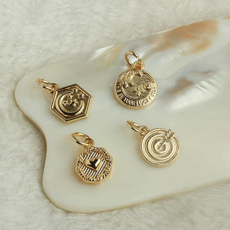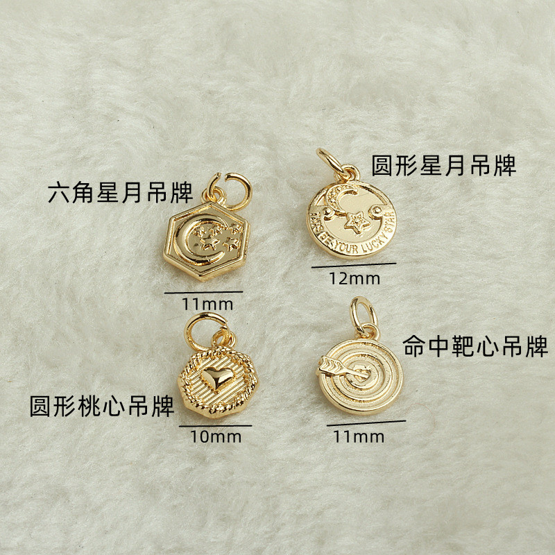 TL-(10pcs)-14k包金保色星月吊牌diy手工飾品配件金色桃心命中靶心吊墜掛件14k,六角星月吊牌|14k,圓形星月吊牌|14k,圓形桃心吊牌|14k,命中靶心吊牌HongYun飾品配件批發零售