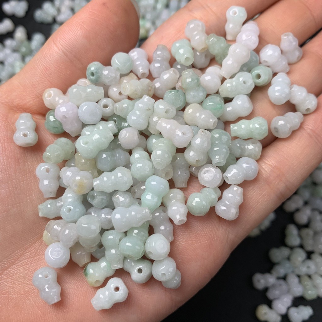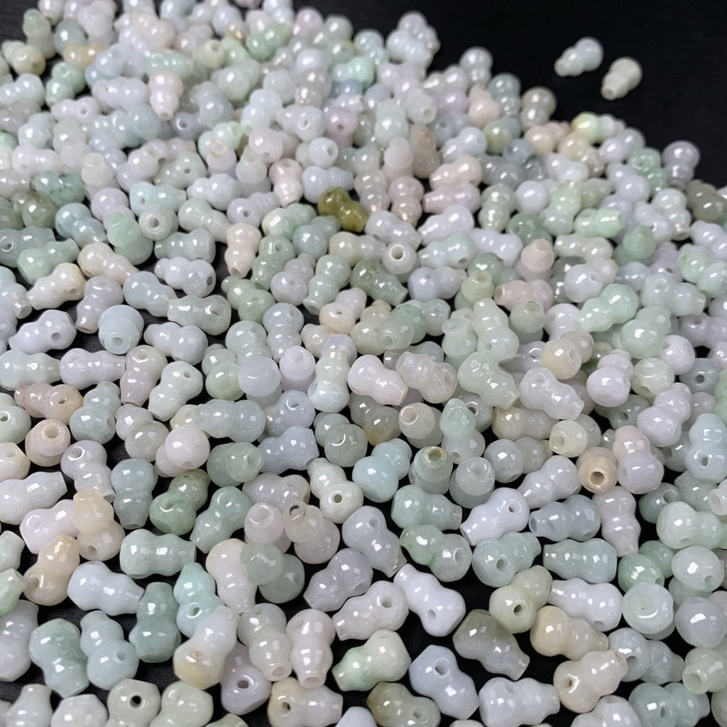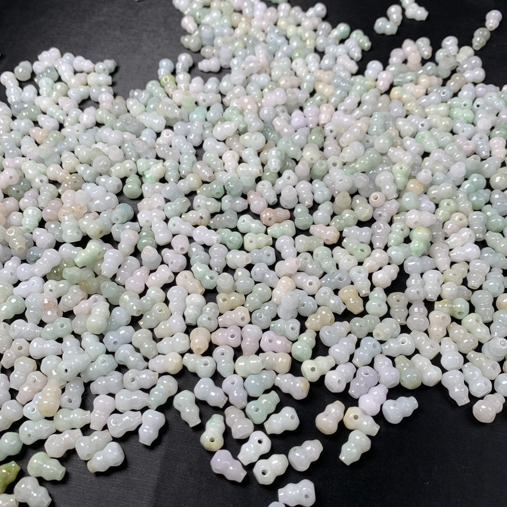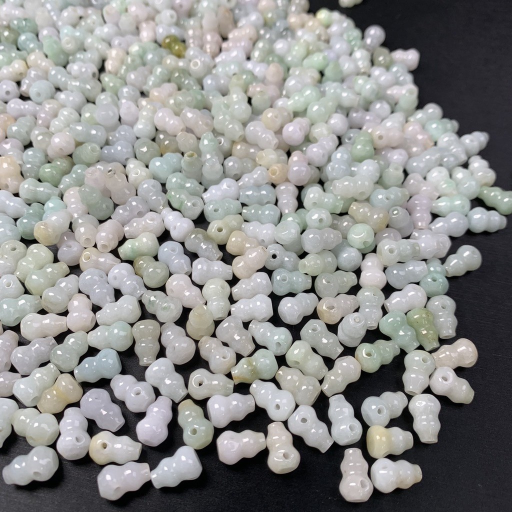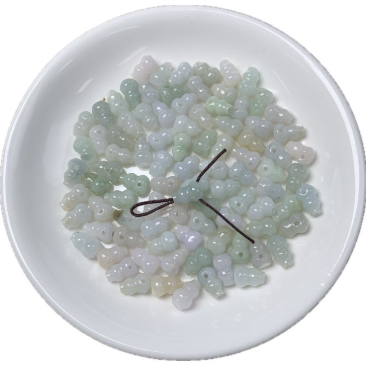 宏雲Hongyun-jf-(5pcs)- 緬甸A貨翡翠三通葫蘆珠新中式國風玉髓葫蘆吊墜項鍊天然玉批發随机发货JadeHongYun飾品配件批發零售