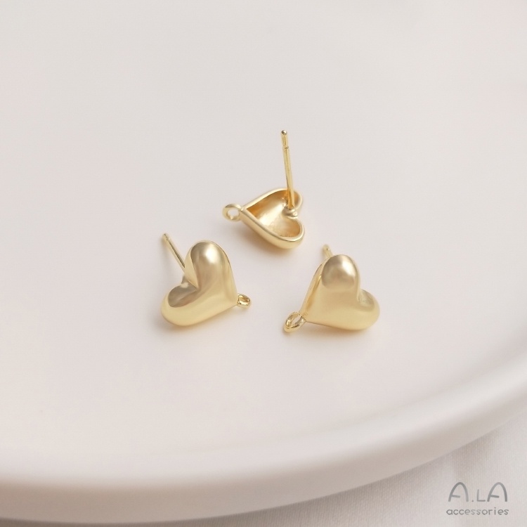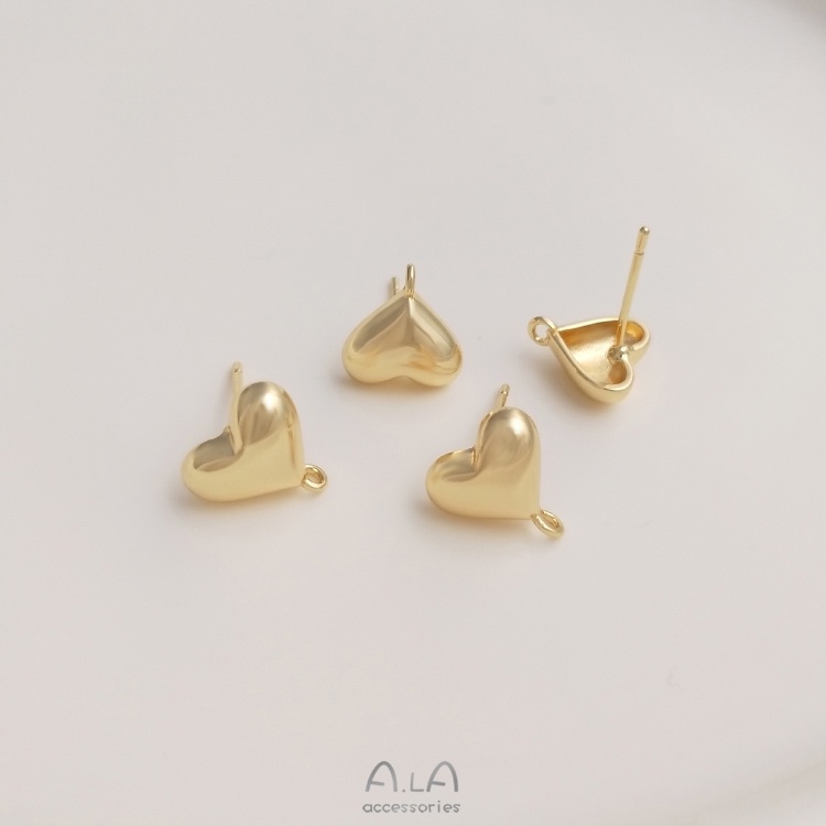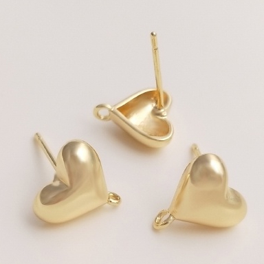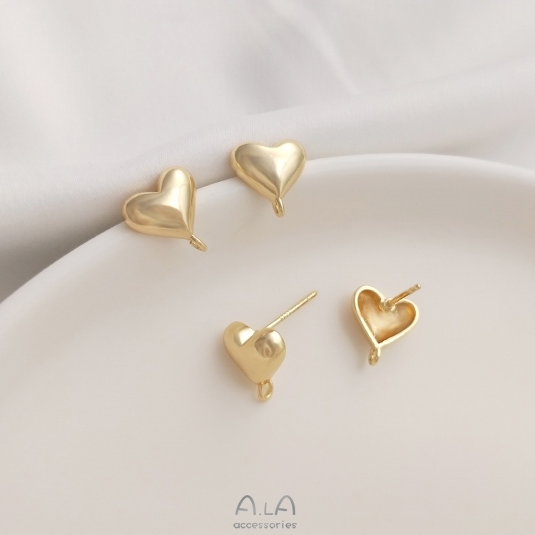 宏雲Hongyun-Ala-0801–保色14K包金立體愛心形帶開口吊環耳釘925銀針耳環diy耳飾品材料立體帶開口吊環耳釘1對 2只OthersHongYun飾品配件批發零售