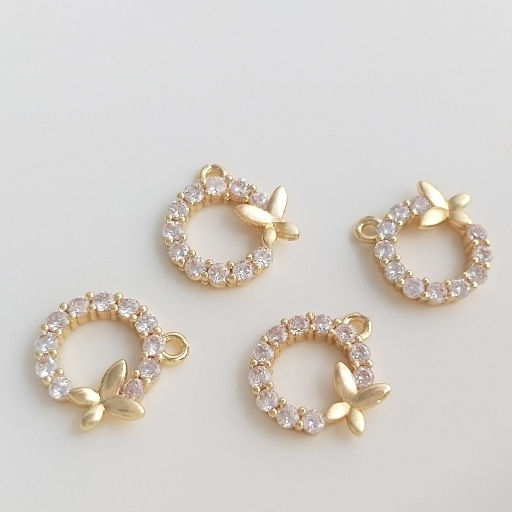 宏雲Hongyun-Ala–保色吊飾14K鍍金鋯石圓環蝴蝶吊墜手工diy手鏈耳環首飾品掛件配飾12mm鋯石圓環蝴蝶吊墜 1個Charms, Pendants & OrnamentsHongYun飾品配件批發零售