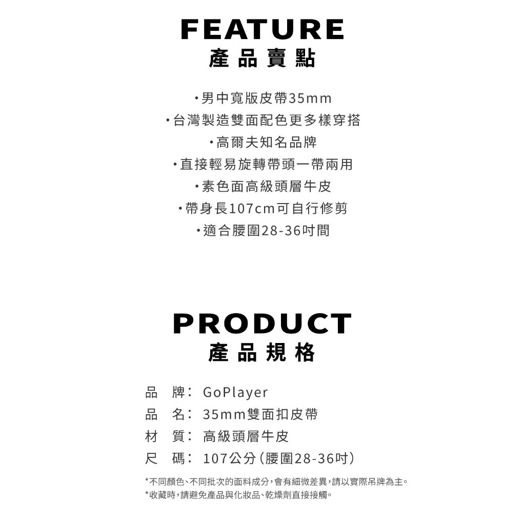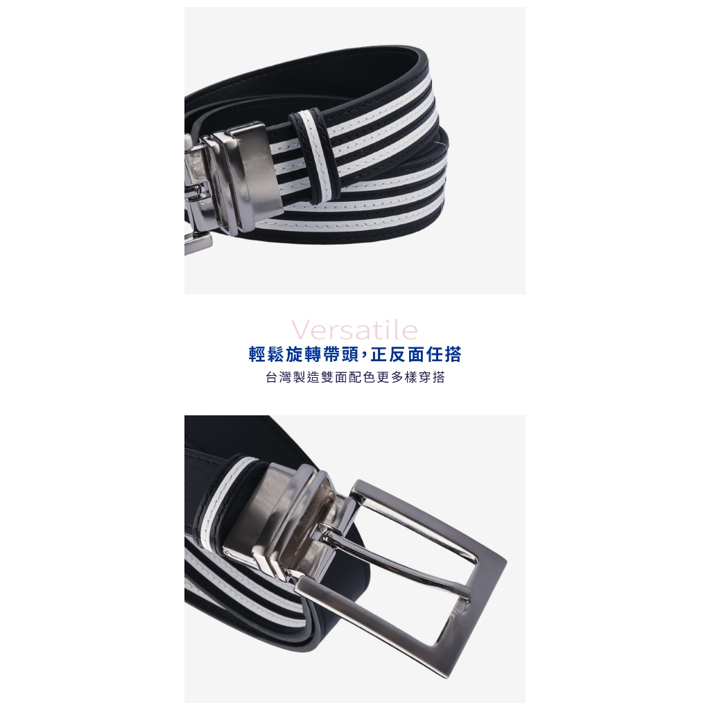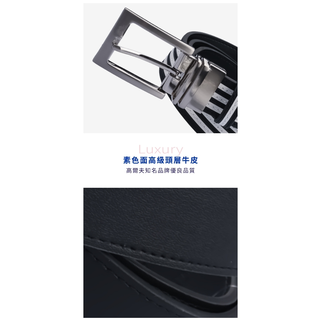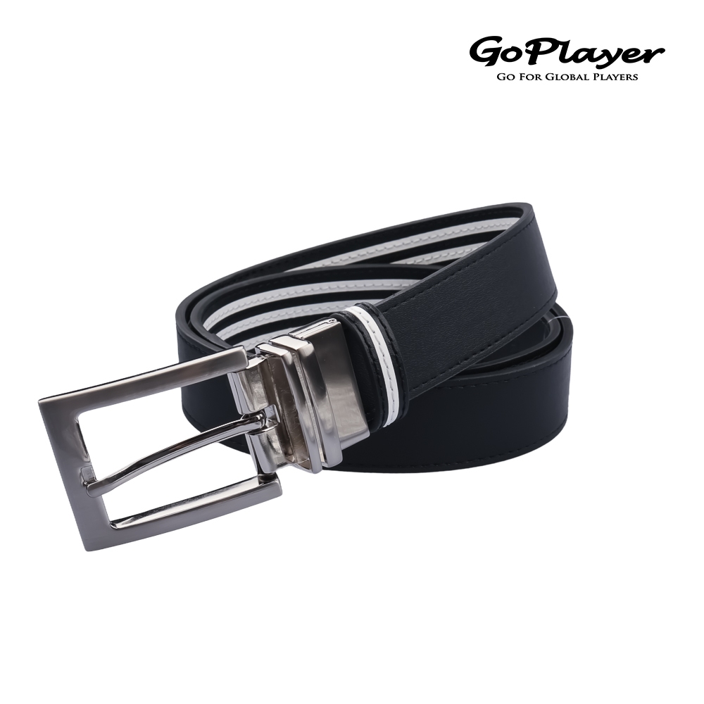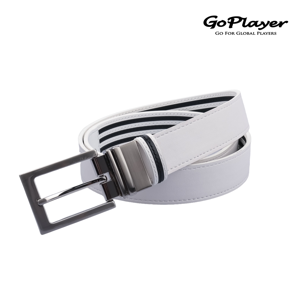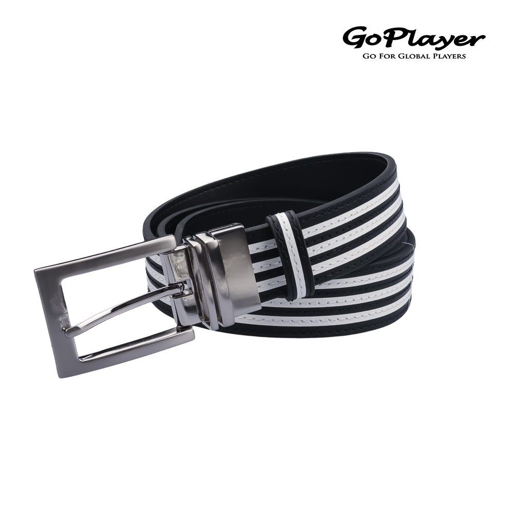 【GoPlayer】35mm雙面扣皮帶 (男仕高爾夫休閒真牛皮旋轉雙面用皮帶)白/白黑條|黑/黑白條GoPlayer高爾夫