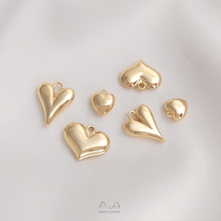 宏雲Hongyun-Ala-保色14K包真金色新款桃心吊飾愛心小掛件手工diy手鏈項鏈鎖骨鏈吊墜寬桃心14.7×11.5mm 1個|小桃心7.8x9mm 1個|長桃心11.5x15mm 1個HongYun飾品配件批發零售