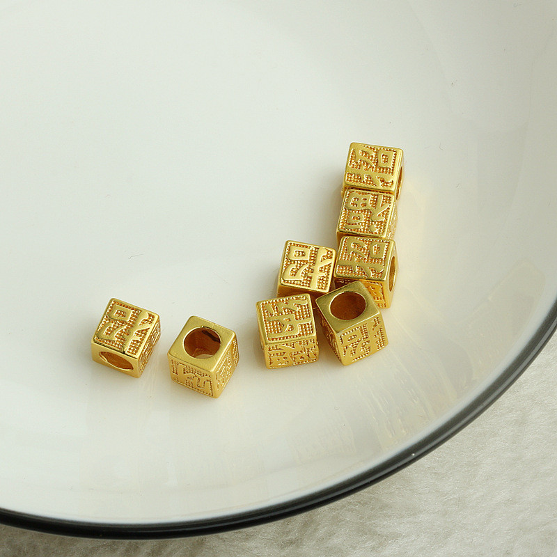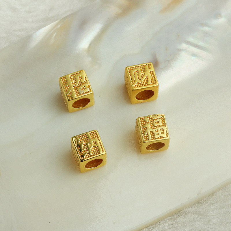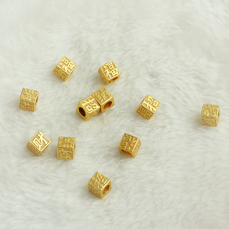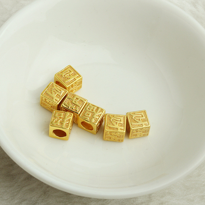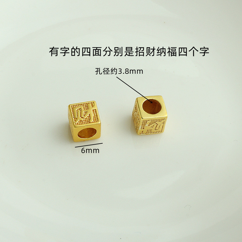 TL-(20pcs)-沙金包金保色招財納福立體隔珠diy手工飾品配件手鏈串珠轉運珠沙金色,6mm招財納福立體隔珠HongYun飾品配件批發零售