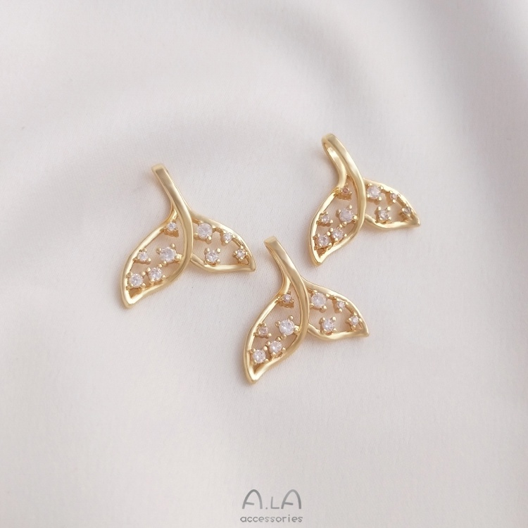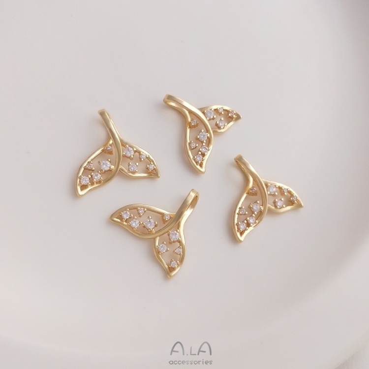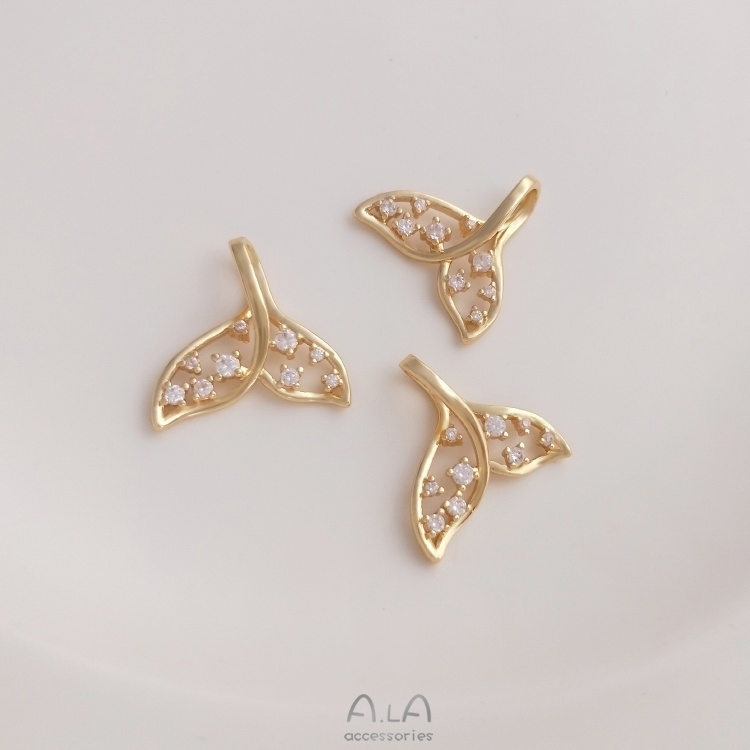 宏雲Hongyun-Ala–14K鍍金保色鏤空鋯石魚尾吊墜美人魚鯨魚尾巴diy手鏈手串項鏈掛件鑲鋯鏤空魚尾吊墜 1個Charms, Pendants & OrnamentsHongYun飾品配件批發零售