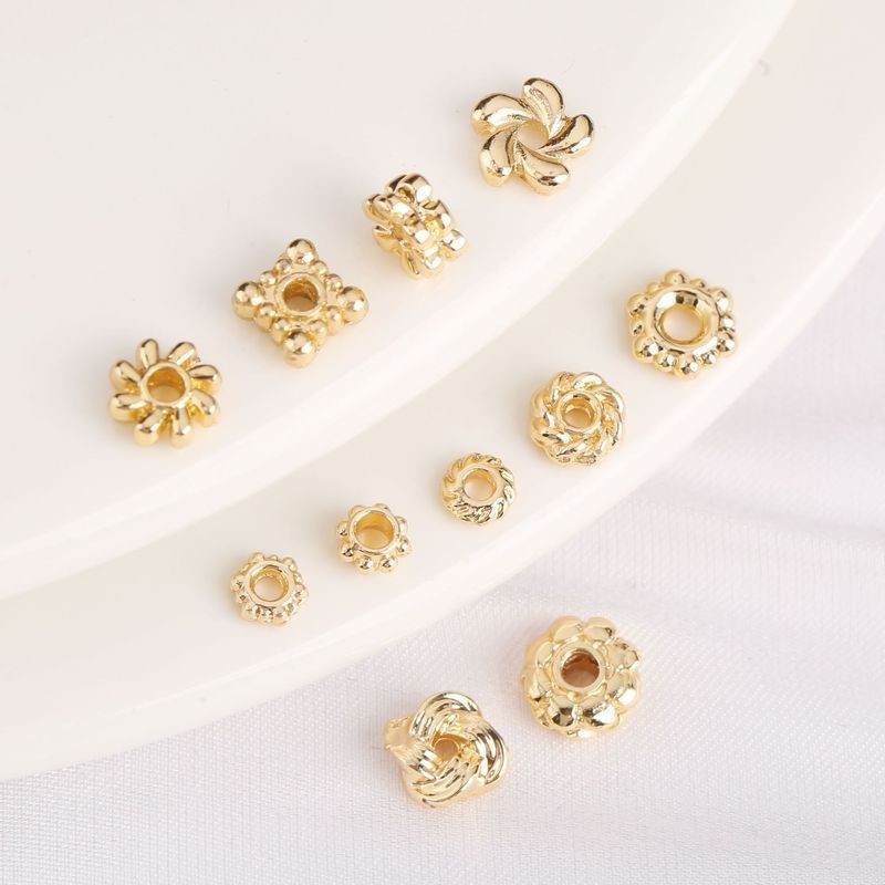 宏雲Hongyun-hzx-(100顆)-14k金保色風火輪麻花大孔隔片隔珠雪花墊片diy手工串珠散珠配件
