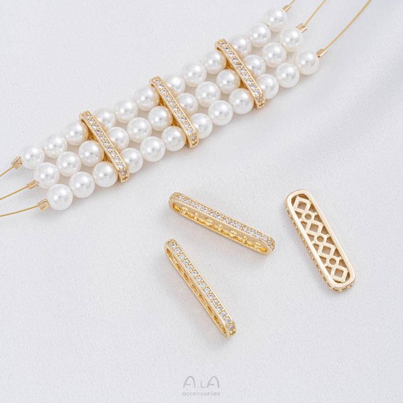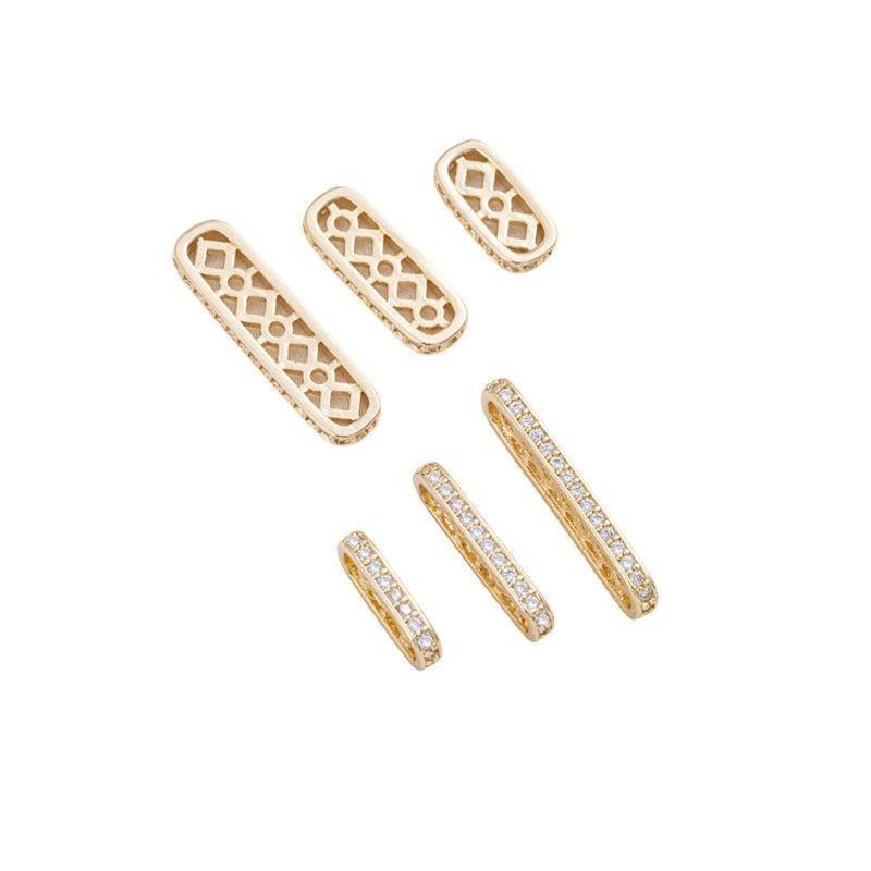 保色14k包金多孔橢圓鋯石隔珠片diy手工串珠雙排珍珠手鍊隔片配件三孔橢圓鋯圈隔片12x6mm|五孔橢圓鋯圈隔片16.6x6mm|七孔橢圓鋯圈隔片22.5.6x6mmHongYun飾品配件批發零售