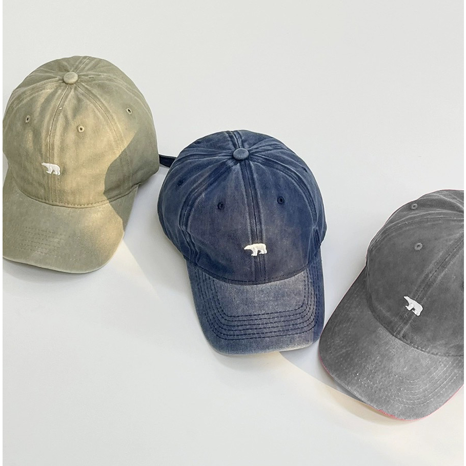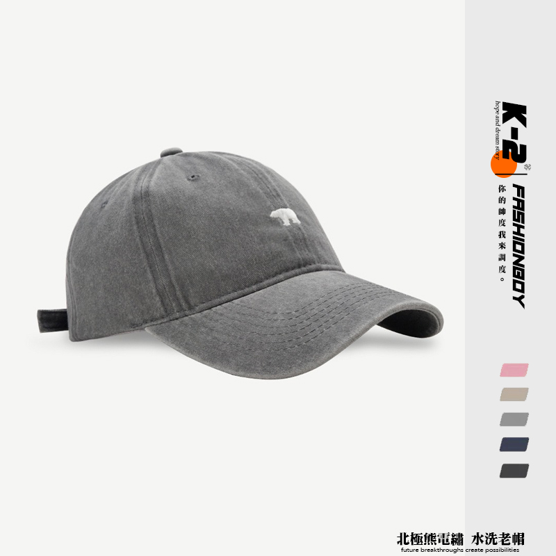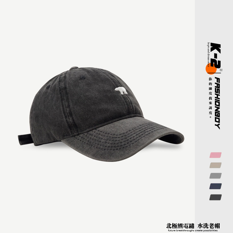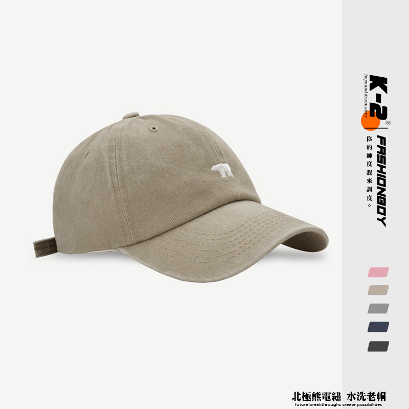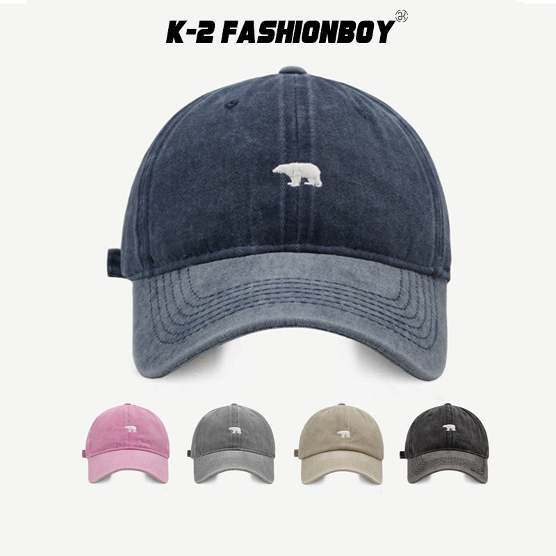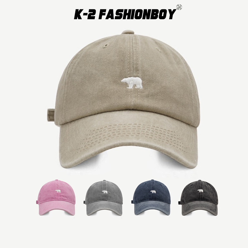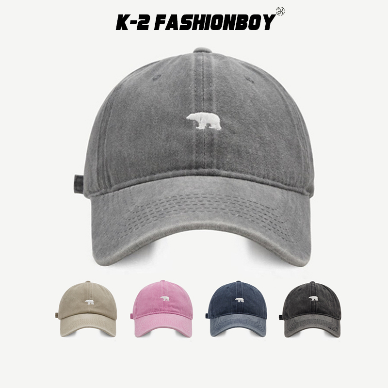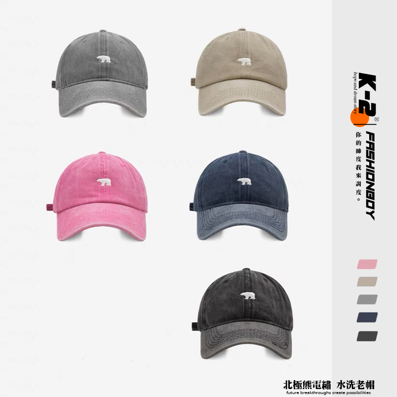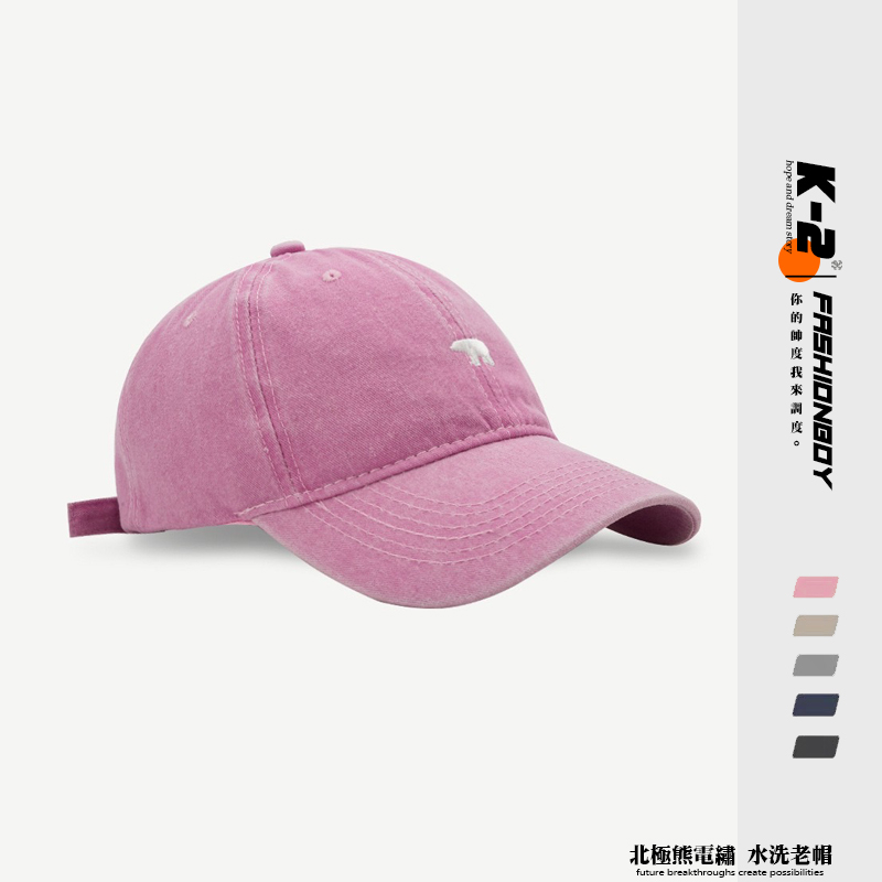 【K-2】北極熊 電繡 刺繡 水洗帽 水洗老帽 古著穿搭 刺繡 棒球帽 老帽 情侶 遮陽 帽子 粉色 熊【KM107】粉色|深藍色|灰色|黑色|卡其色K-2 Fashionboy