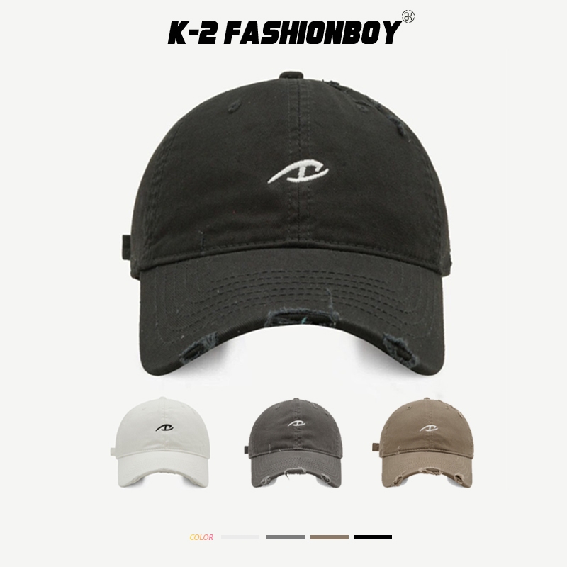 【K-2】潮流刺繡LOGO 破壞 破洞 老帽 棒球帽 瘦臉 帥哥老帽 刺繡老帽 破壞老帽 帽子 帽 K2【KM156】白色|黑色|卡其色|灰色K-2 Fashionboy