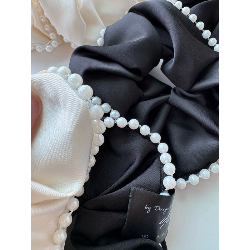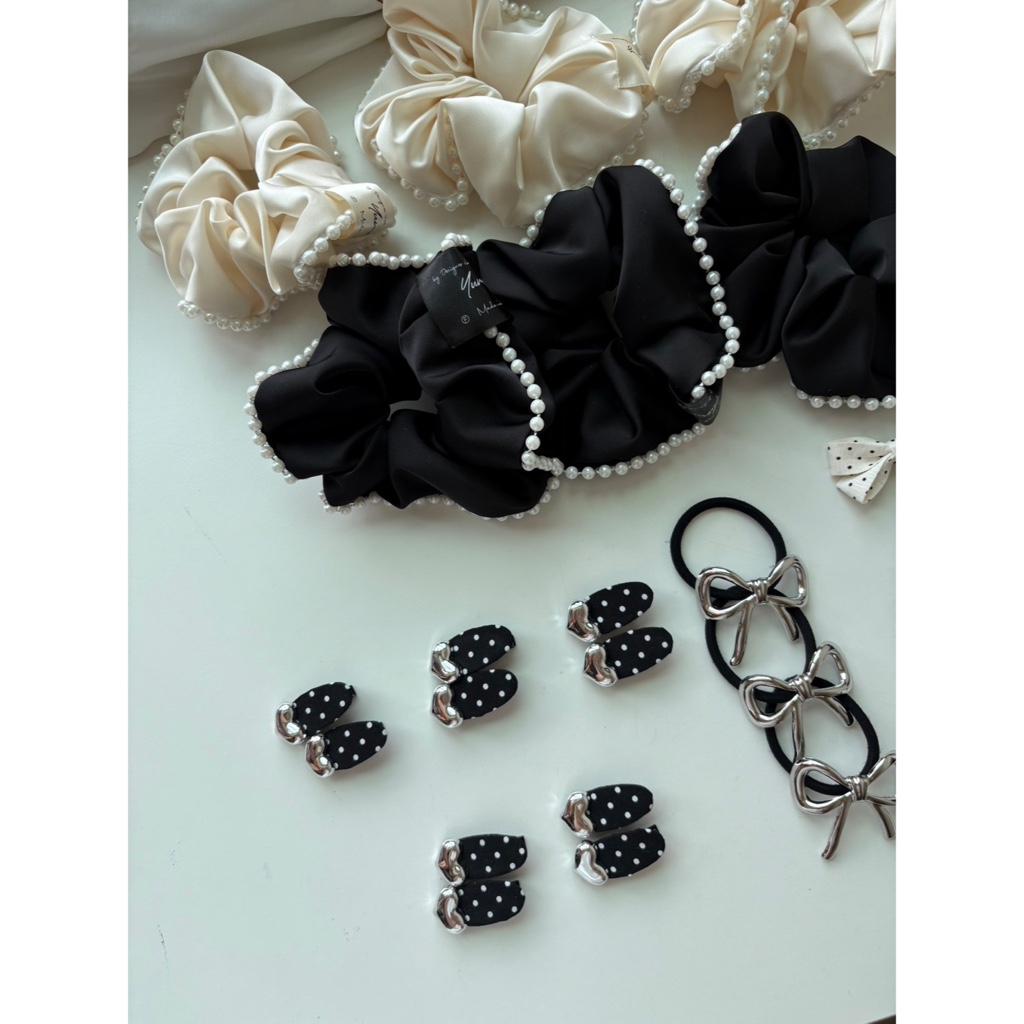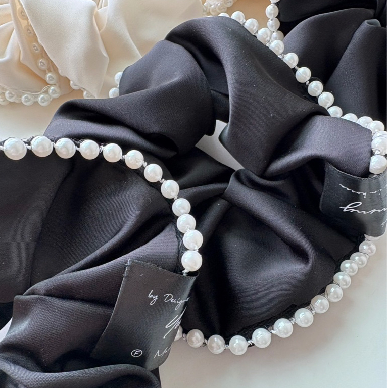 【Honeymin韓國飾品】韓國緞面珍珠滾邊大腸圈|法式腸圈 滾邊 白色髮圈 珍珠 黑色緞面 髮飾白|黑Hair Ties, Ribbons & ScrunchiesHoneymin Accessories 韓國飾品