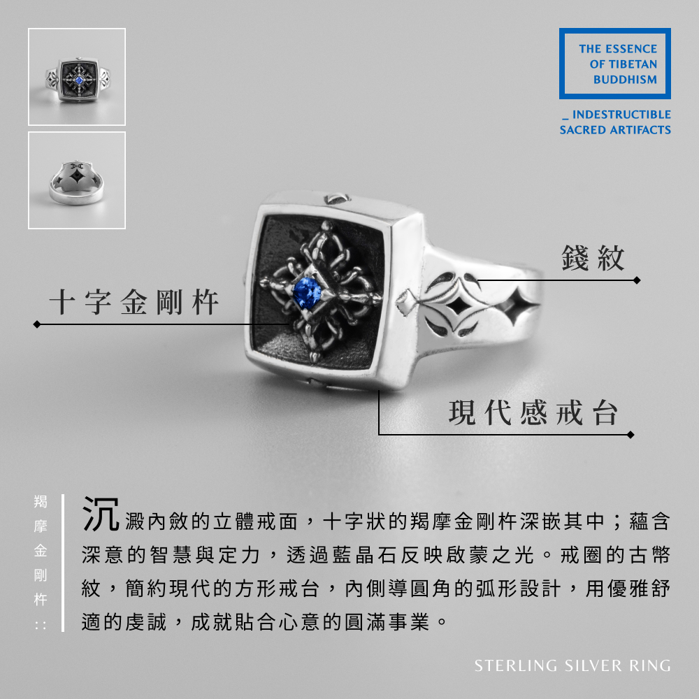 【JK銀飾】羯摩金剛杵 純銀戒指/925純銀戒指、金剛杵、普巴杵7號|8號|9號|10號|11號JK銀飾.官方賣場