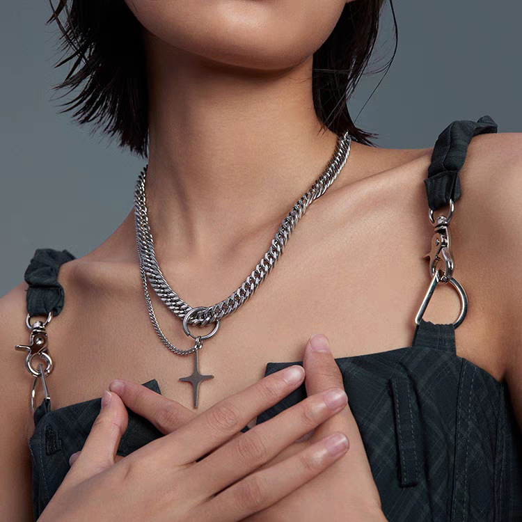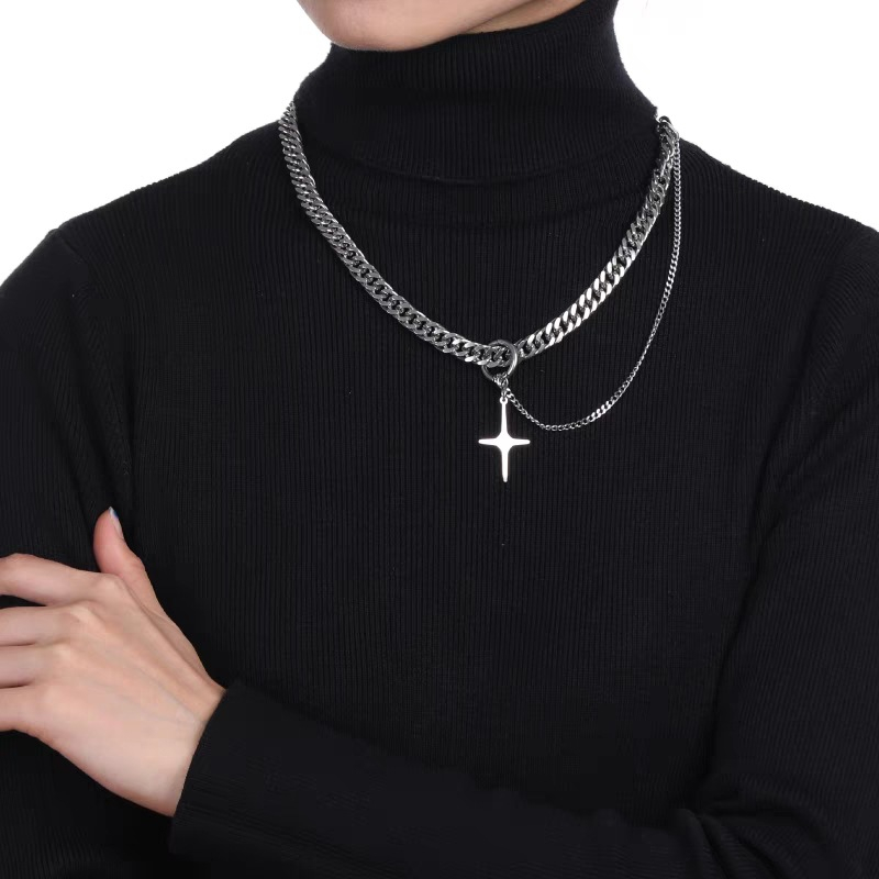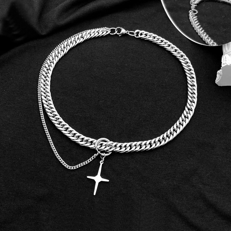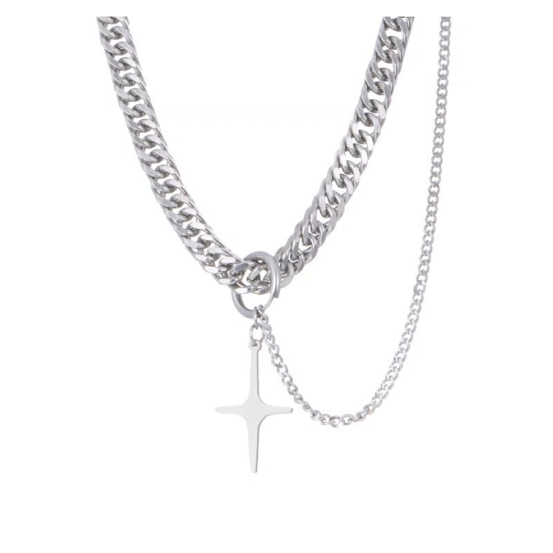 【K-2】鈦鋼厚古巴 雙層單掛 星光十字架 項鍊 星芒吊墜 古巴項鍊 小眾設計 飾品 項鍊 麻花鏈 毛衣鏈【KM110】【K-2】鈦鋼厚古巴 雙層單掛 星光十字架 項鍊 星芒吊墜 古巴項鍊 小眾設計 飾品 項鍊 麻花鏈 毛衣鏈【KM110】K-2 Fashionboy