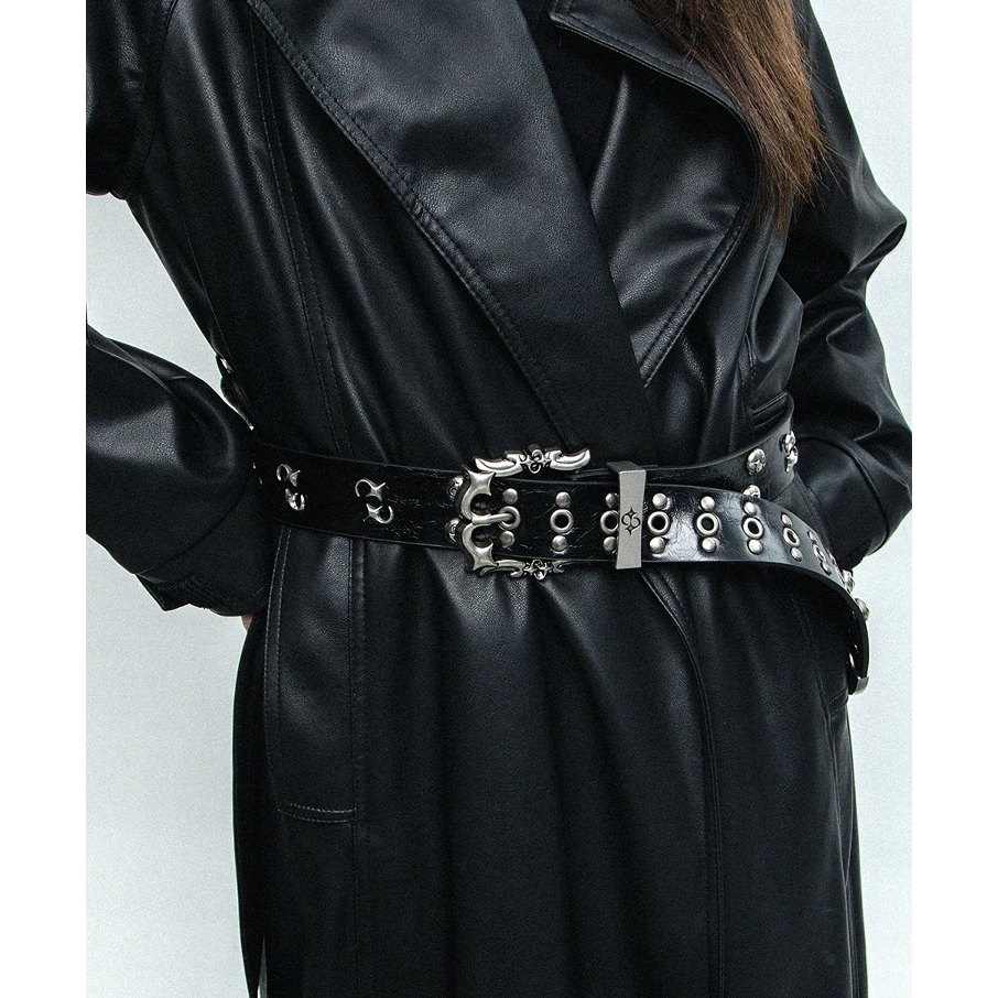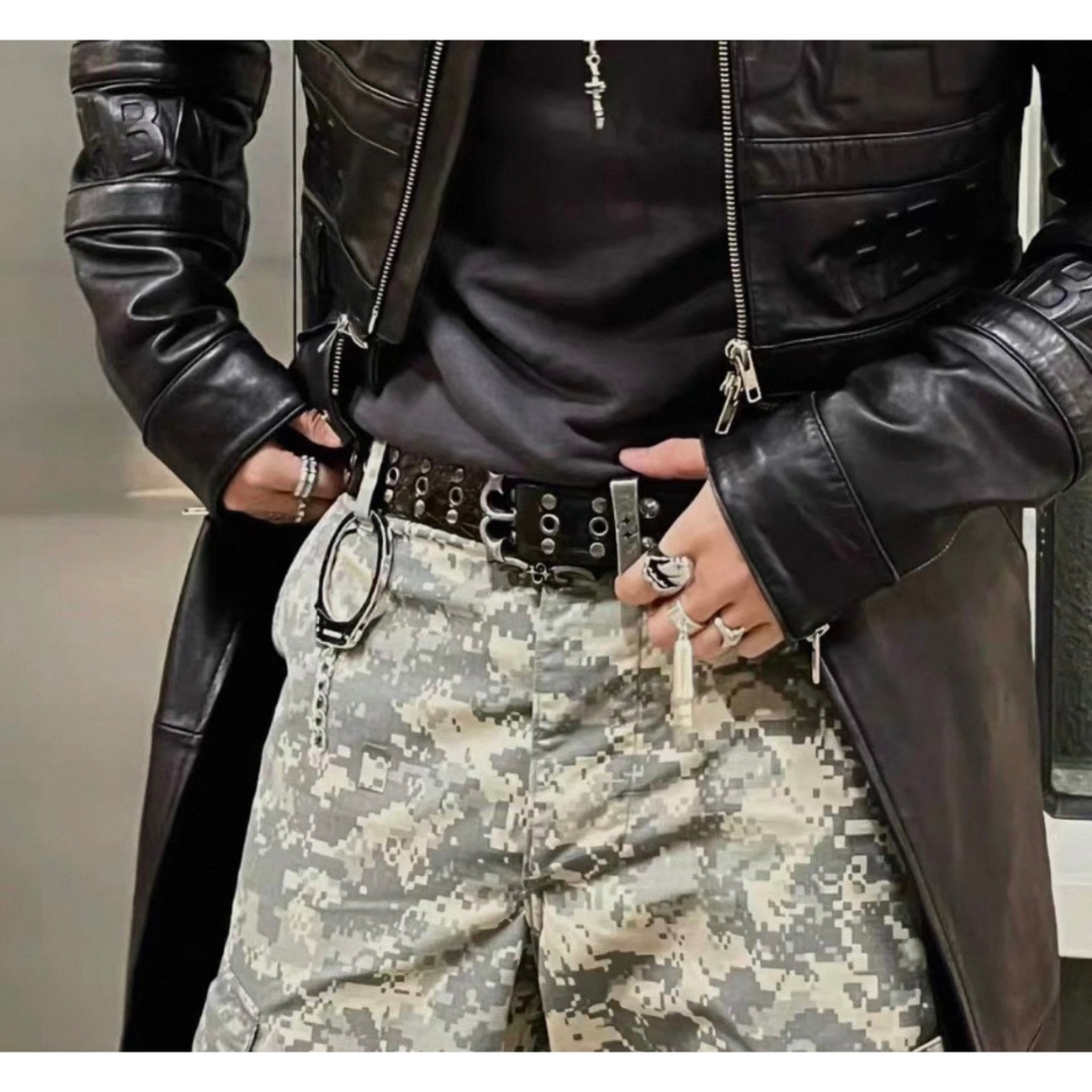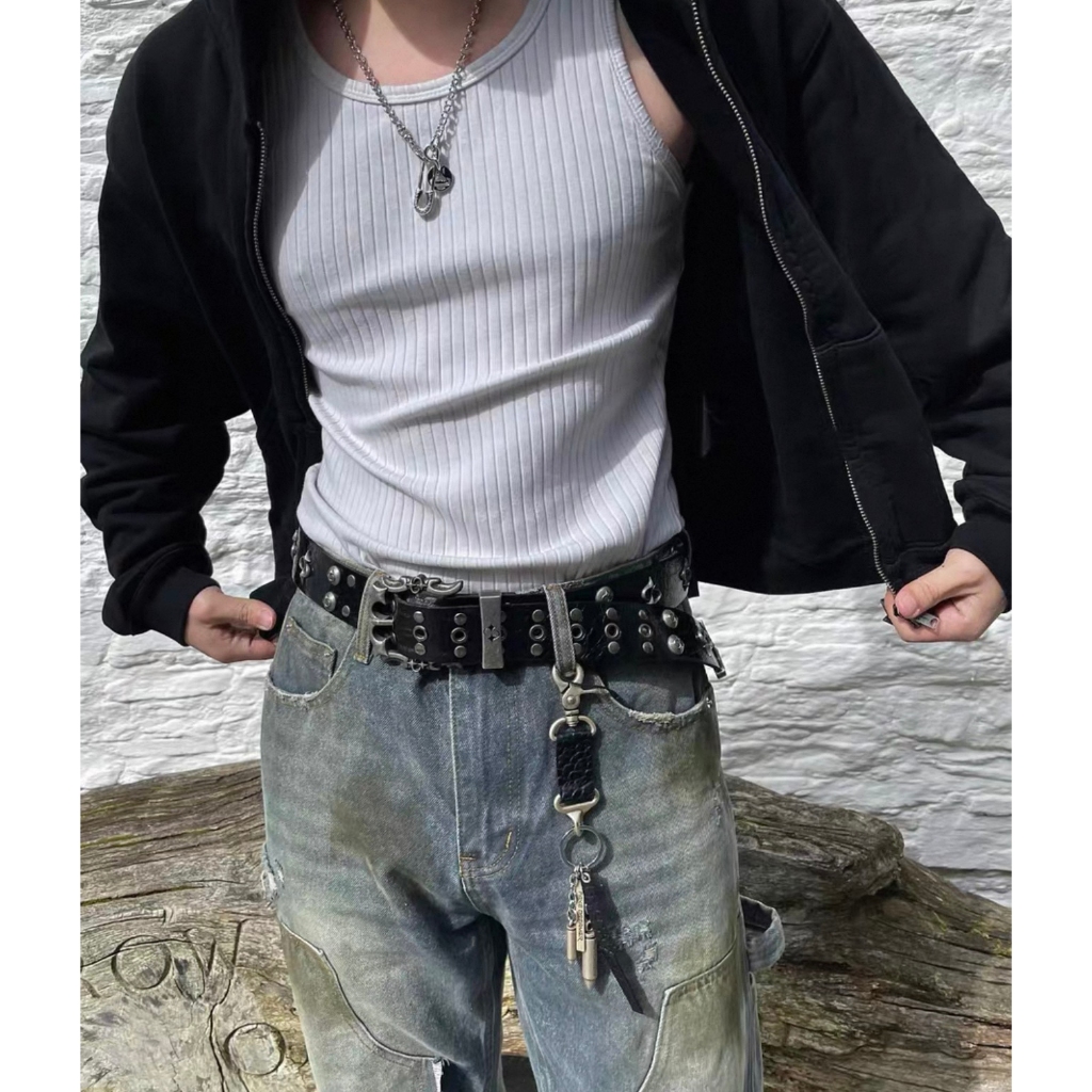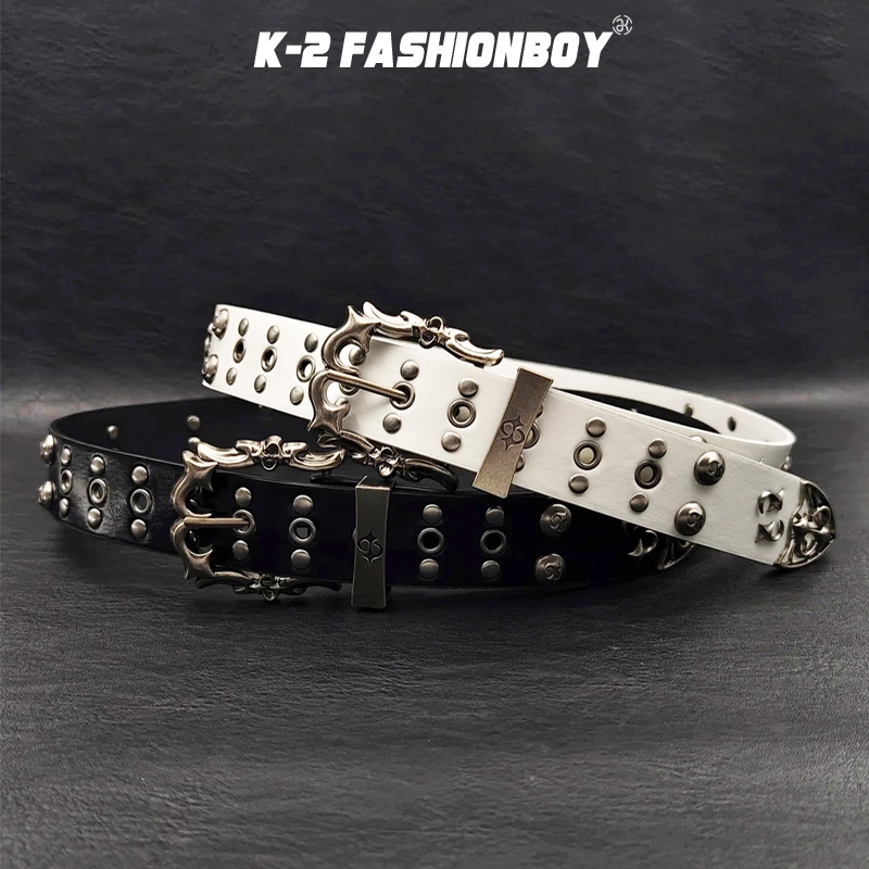 【K-2】烈焰金屬 鱷魚紋 流星 鉚釘 做舊 裂紋 個性必備 皮帶女生 皮帶男生 腰帶 皮帶 Y2K皮帶【KM230】白色|黑色K-2 Fashionboy