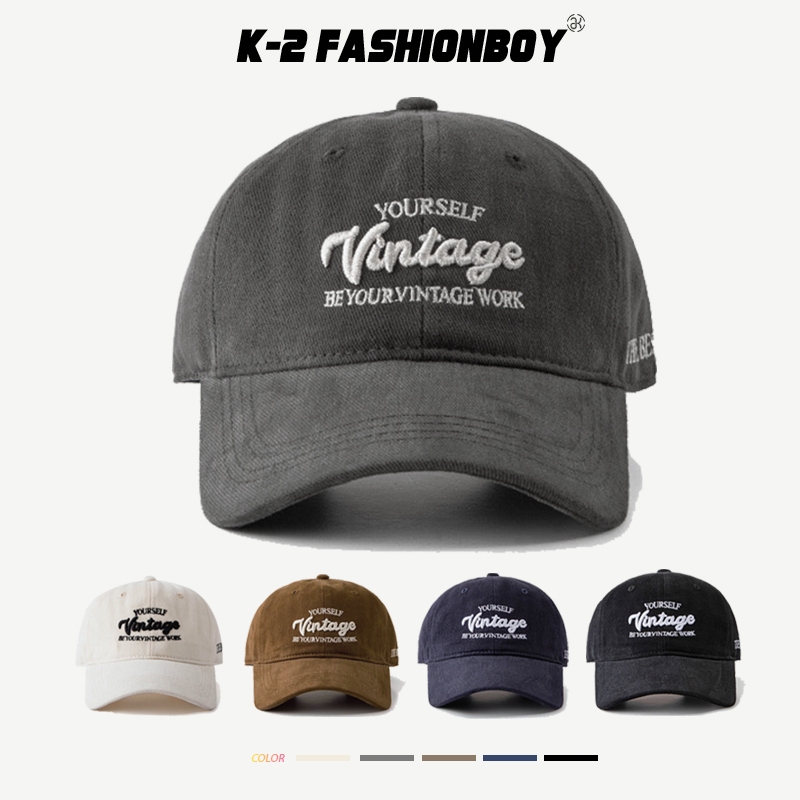 【K-2】Vintage 刺繡老帽 美式 軟頂 立體刺繡 英文 鴨舌帽 顯臉小 棒球帽 女帽 帽子 老帽【KM145】米白色|黑色|藏青|灰色|咖啡色K-2 Fashionboy
