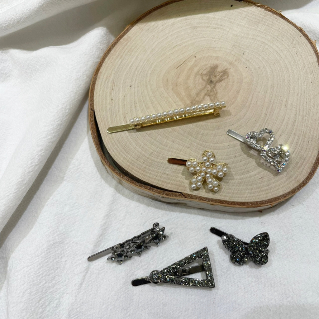 【Honeymin韓國飾品】愛心鑽磁鐵髮夾|鑽髮夾 珍珠髮夾 正韓流行灰黑|銀色Hair Clips & Hair PinsHoneymin Accessories 韓國飾品