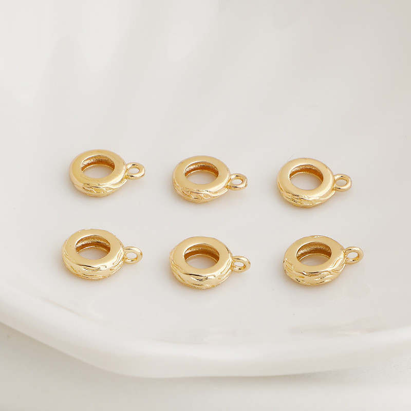 宏雲Hongyun-xs–14K包金保色樹葉紋圓形吊環祥雲手鏈項鍊連接環吊墜扣diy配飾品14k色,A款樹葉紋橫吊環連接扣|14k色,B款祥雲紋豎吊環連接扣HongYun飾品配件批發零售