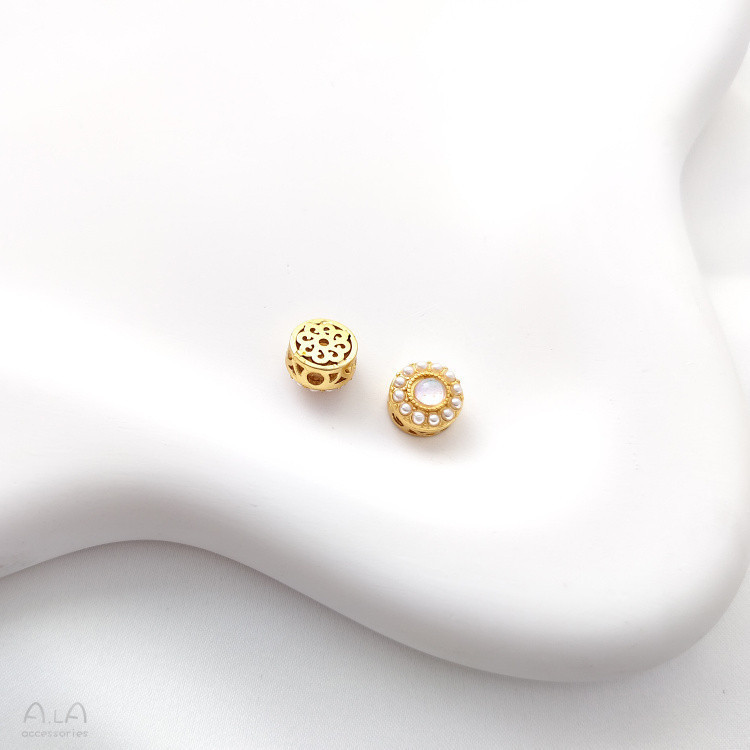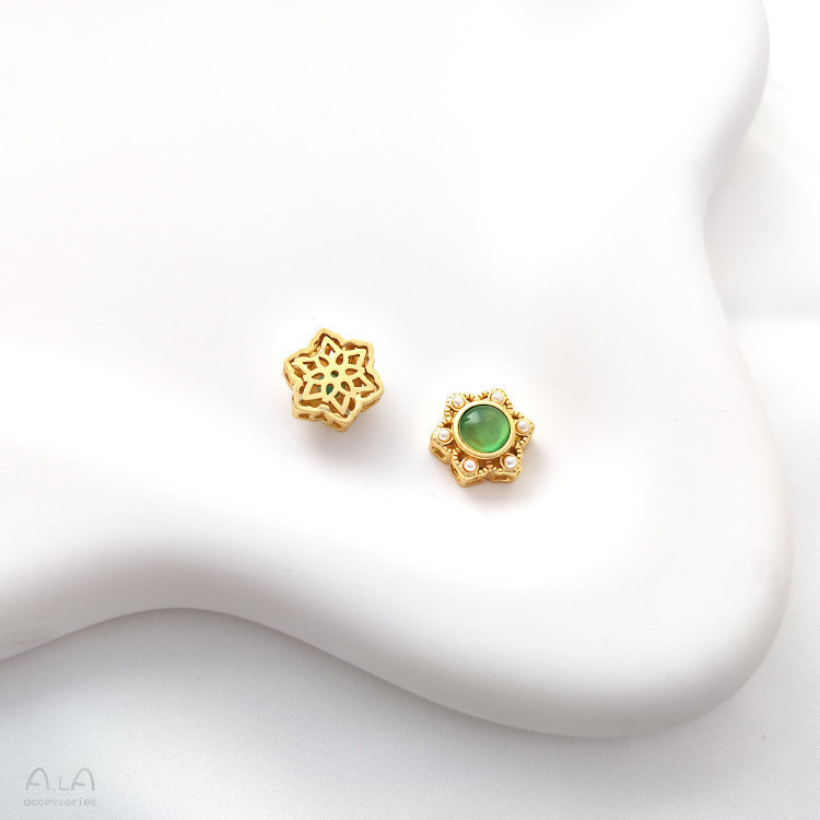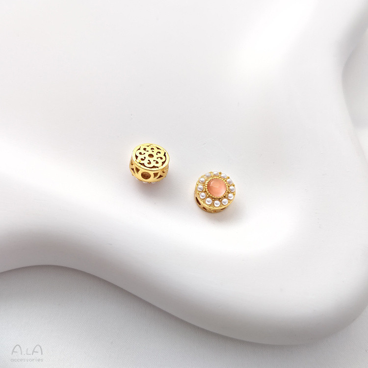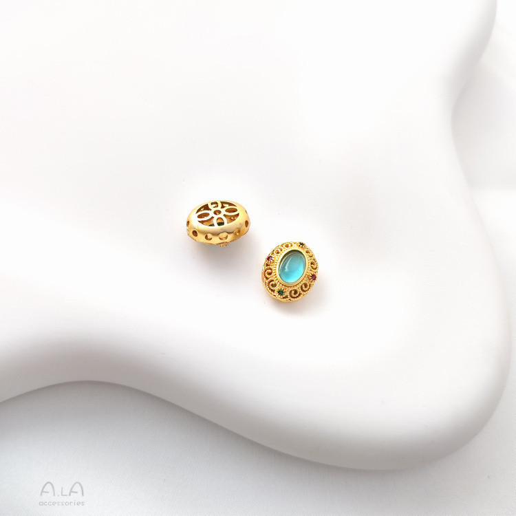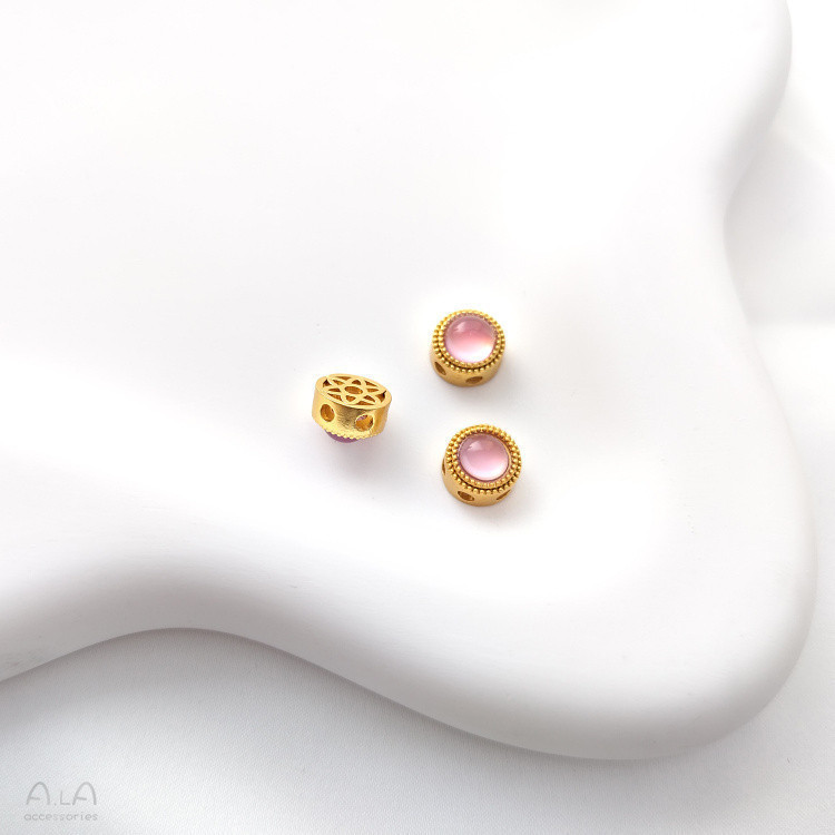 宏雲Hongyun-ala- 啞金色保色鑲嵌貓眼石隔珠仿碧玉轉運珠手工diy手鍊項鍊飾品配件