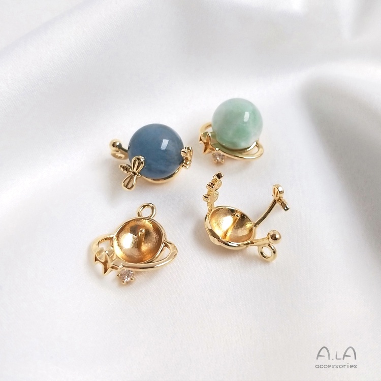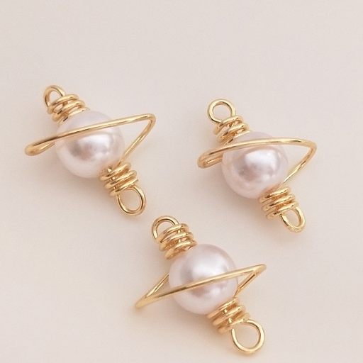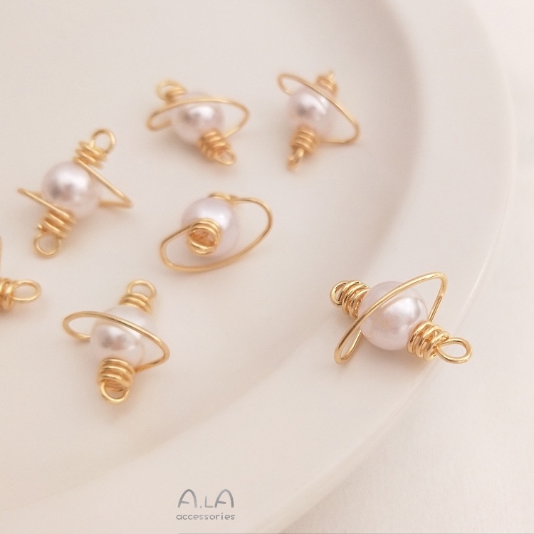 宏雲Hongyun-Ala-保色14K鍍金線繞線珍珠星球吊墜手工diy耳環手鏈項鏈飾品連接配件