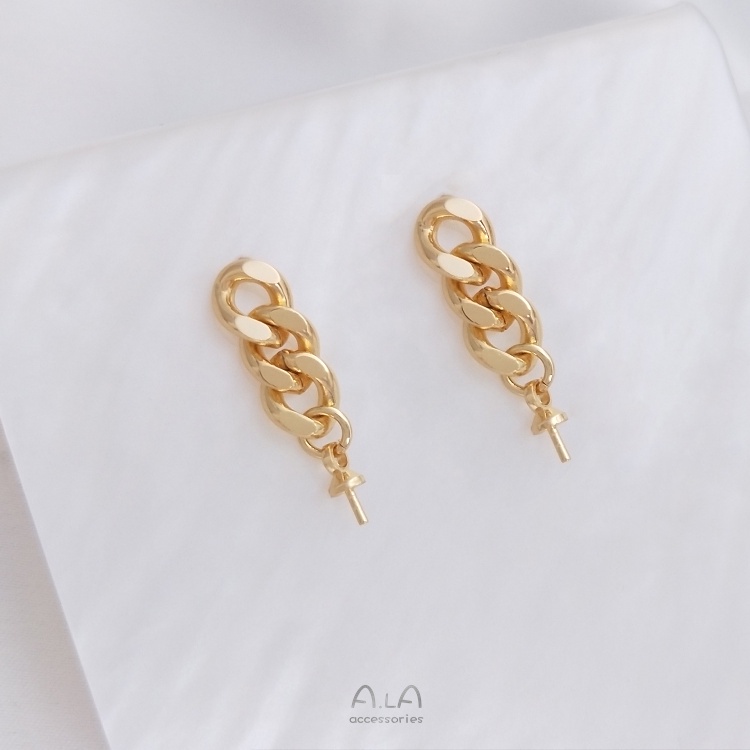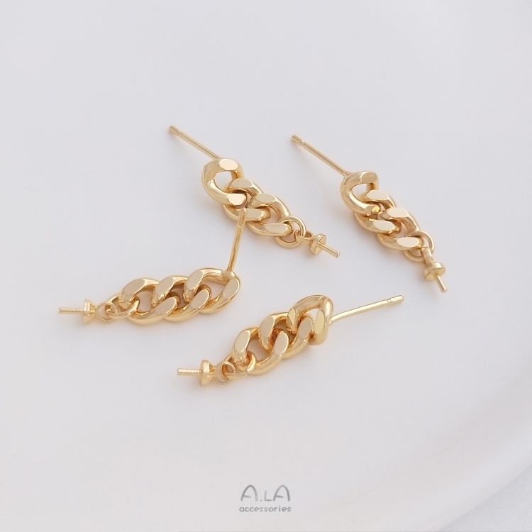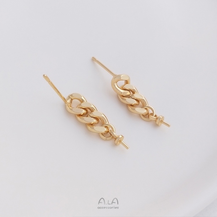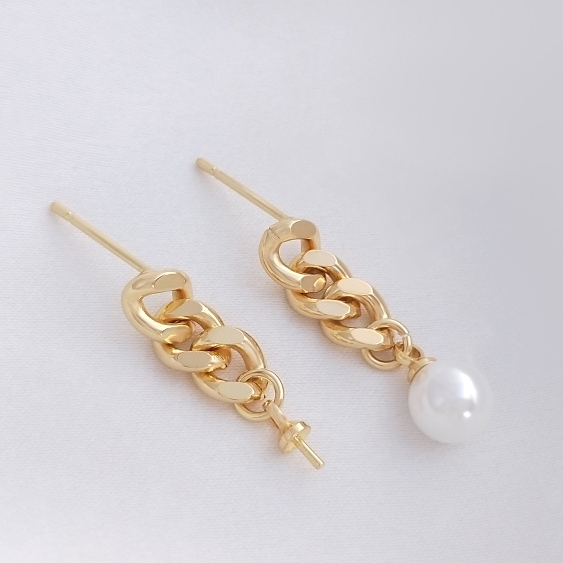 宏雲Hongyun-Ala–14K鍍金保色鏈條掛羊眼半孔珠托耳釘925銀針手工diy粘珠耳飾配件鏈條掛羊眼銀針耳釘1對 2只OthersHongYun飾品配件批發零售