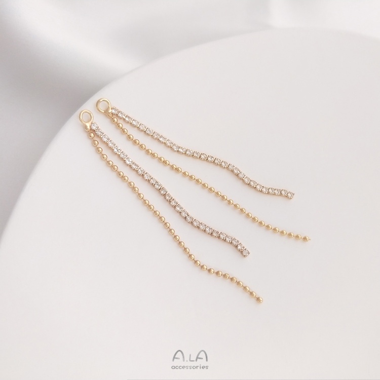 宏雲Hongyun-Ala–14K鍍金保色鋯石爪鏈珠鏈流蘇鏈耳線手工diy耳釘耳環耳掛配件材料鋯石爪鏈+珠鏈流蘇 1條|長短雙股珠鏈流蘇 1條OthersHongYun飾品配件批發零售