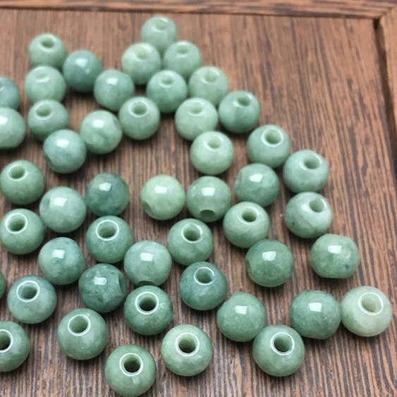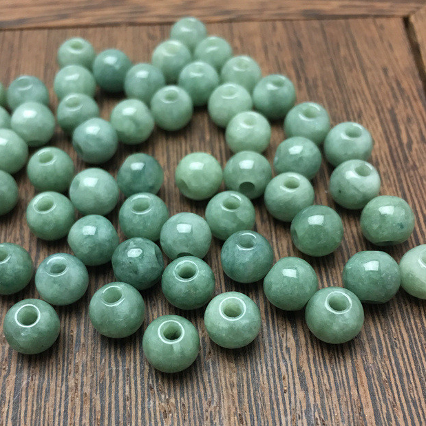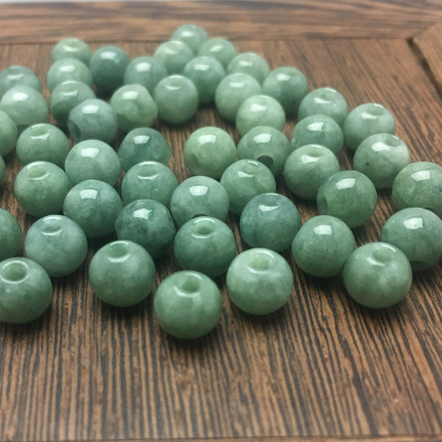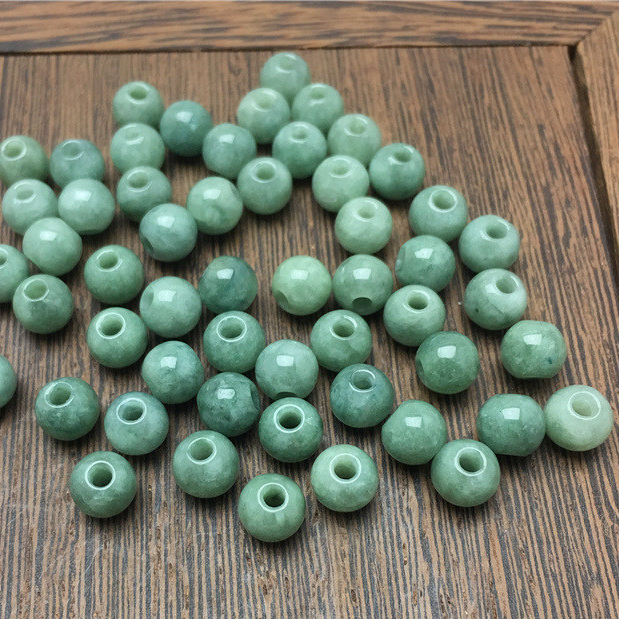 宏雲Hongyun-jf-(10pcs)- 緬甸翡翠a貨大孔圓珠玉珠子散批桶珠冰種玉石配件diy手鍊批發6.6mm(孔2mm)|7.5MM(孔2.5mm)|10MM(孔3.5MM)JadeHongYun飾品配件批發零售