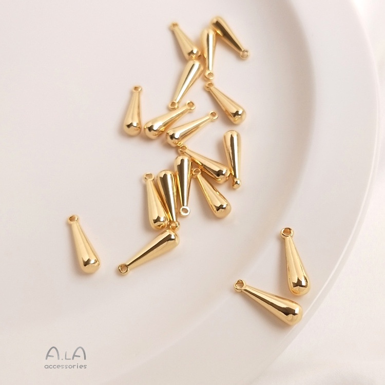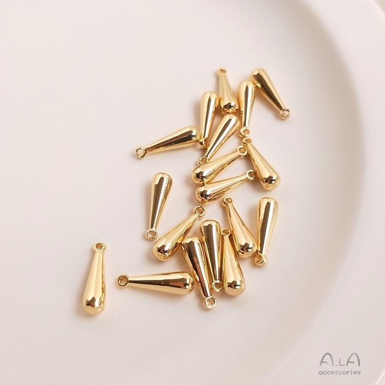 宏雲Hongyun-Ala-銅包14K真金色保色長水滴形吊墜配件手工diy首飾品耳環耳吊配飾掛件13.5x4mm長水滴吊墜 1個HongYun飾品配件批發零售