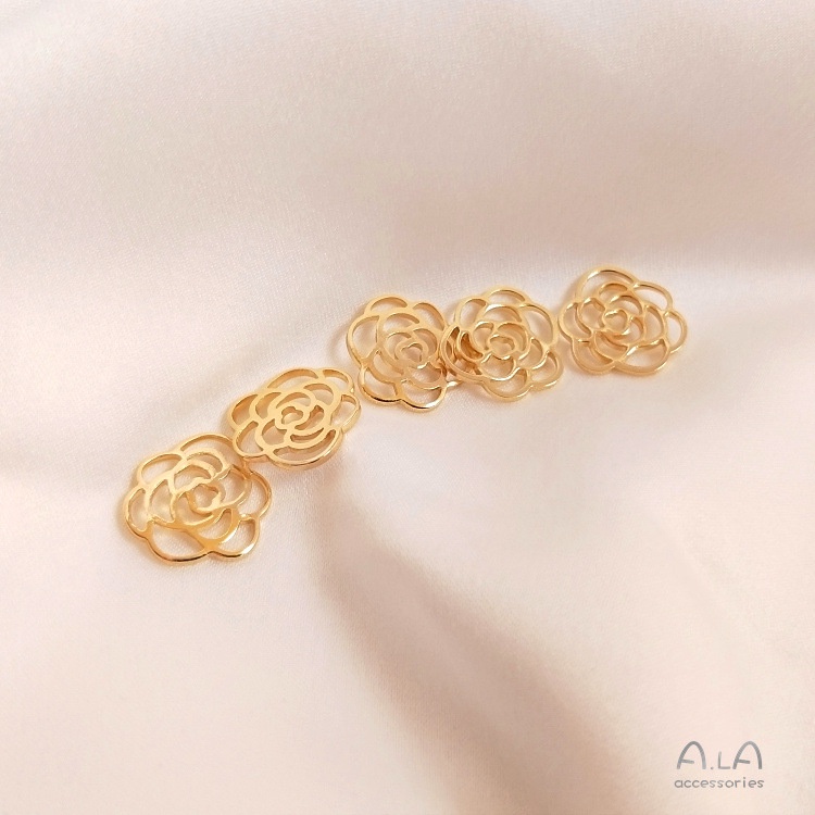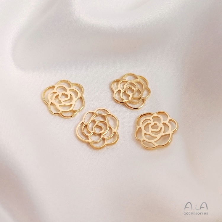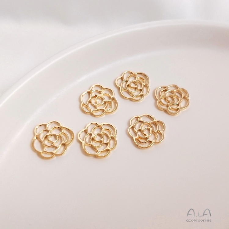 宏雲Hongyun-Ala-14K鍍金保色配件銅鍍真金色鏤空玫瑰花吊墜diy項鏈耳環吊飾首飾材料12mm片狀鏤空玫瑰花 1個HongYun飾品配件批發零售