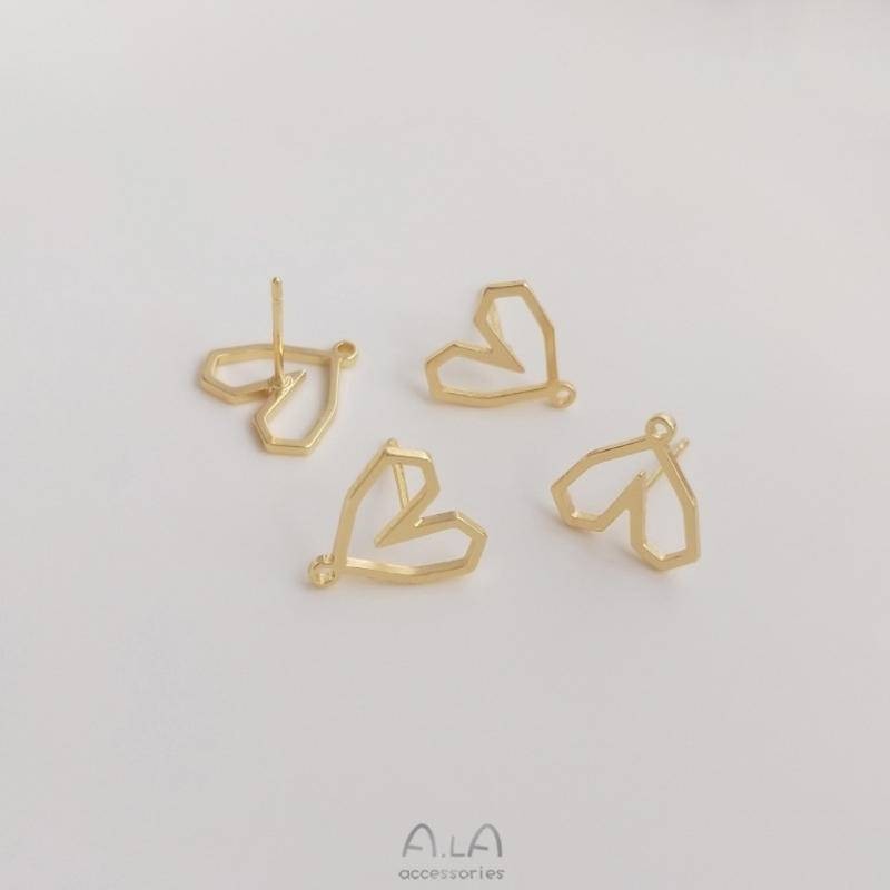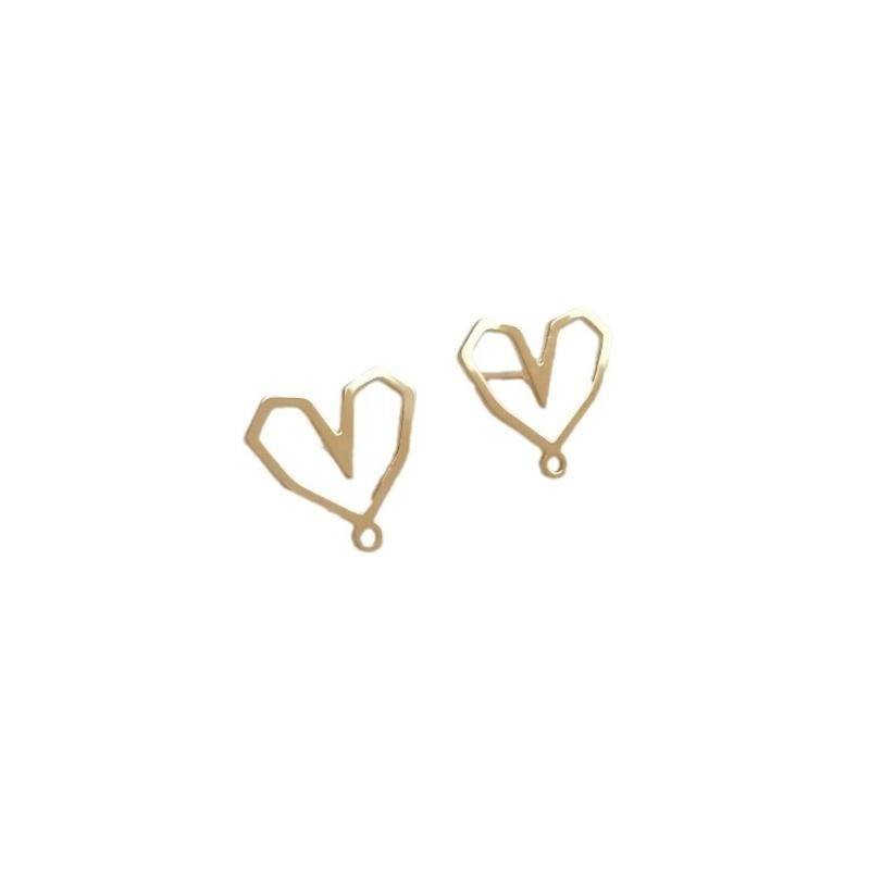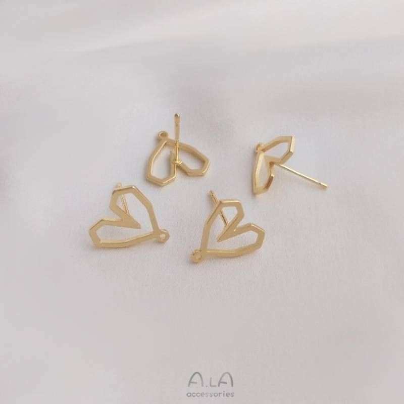 14K包金保色幾何心形框帶吊環耳釘925銀針耳環手工diy愛心耳飾品幾何心形框帶吊銀針耳釘1對 2隻HongYun飾品配件批發零售