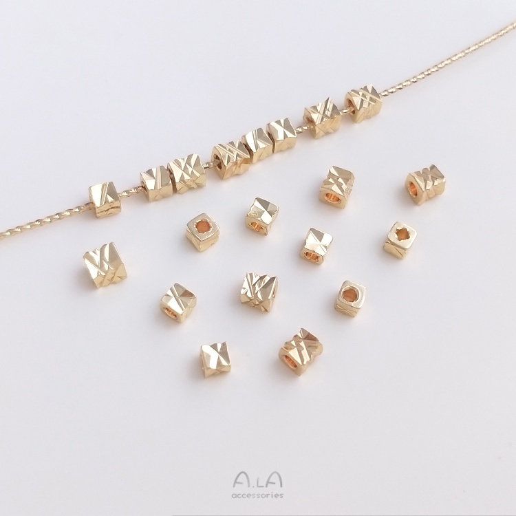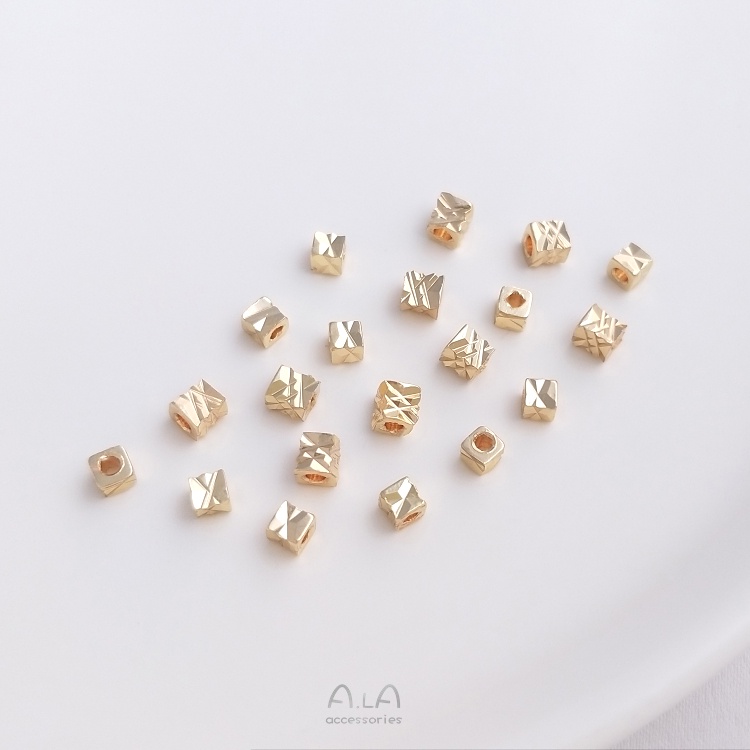 宏雲Hongyun-Ala-0801–保色車花方珠14K包金批花切面方塊隔珠diy串珠手鏈項鏈飾品配件2.5mm車花方珠【50顆】|3.0mm車花方珠【50顆】OthersHongYun飾品配件批發零售