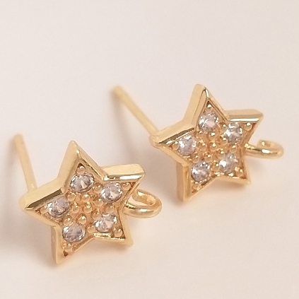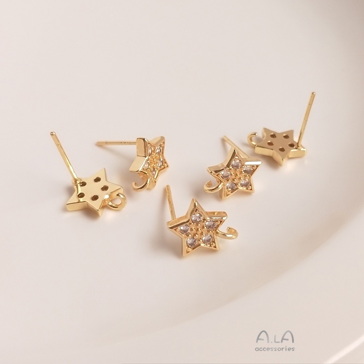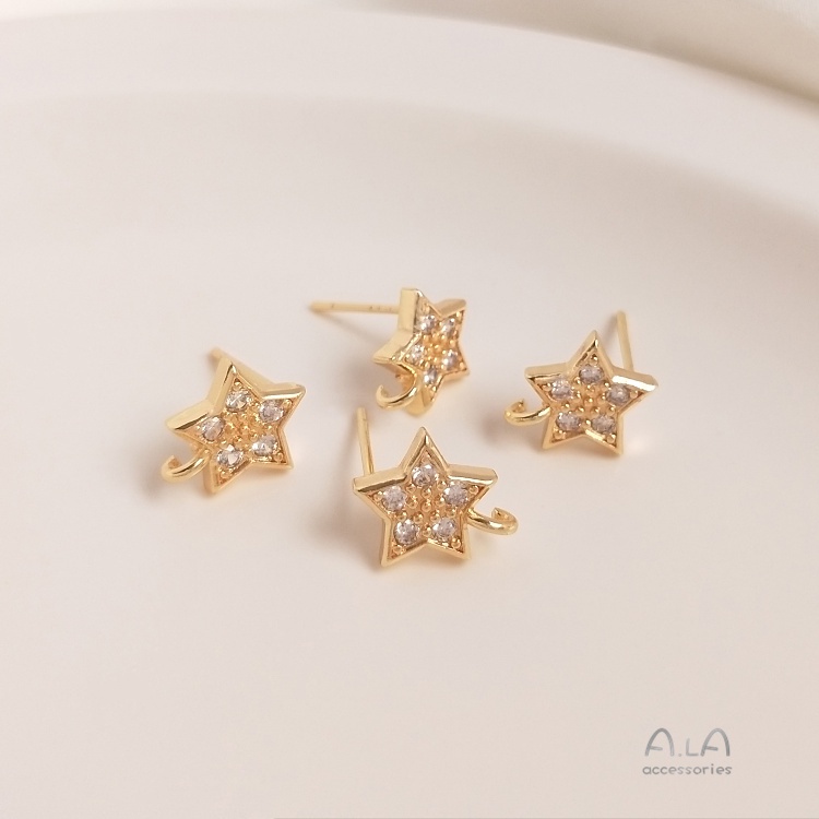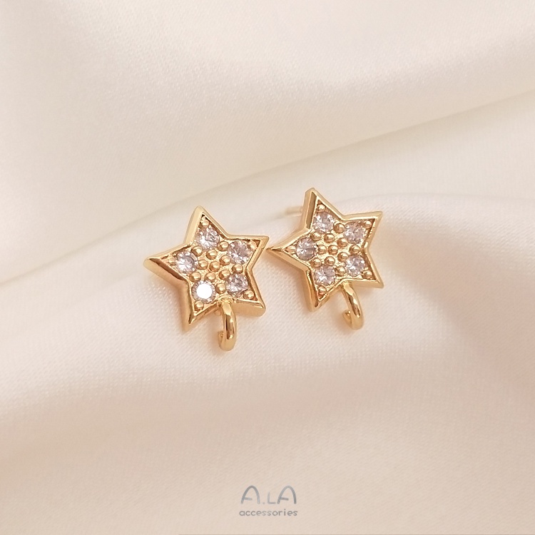 宏雲Hongyun-Ala–14K鍍金保色鑲鋯石五角星帶吊環耳釘925銀針diy帶掛圈手作耳飾品鋯石五角星帶吊環耳釘 1對 2只OthersHongYun飾品配件批發零售