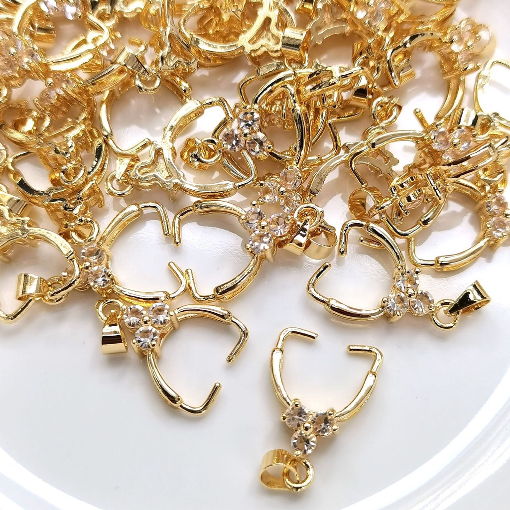 HC-1108【工廠直銷 10pcs/包】 14K包金保色吊墜扣鑲鉆 DIY路路通夾扣 瓜子扣 夾玉器珠子 水晶項鏈銀色,三個鉆吊墜扣【10pcs/包】|18k金色 保色,三個鉆吊墜扣【10pcs/包】|白金色 保色,三個鉆吊墜扣【10pcs/包】|玫瑰金色 保色,三個鉆吊墜扣【10pcs/包】|14k金色 保色,三個鉆吊墜扣【10pcs/包】HongYun飾品配件批發零售