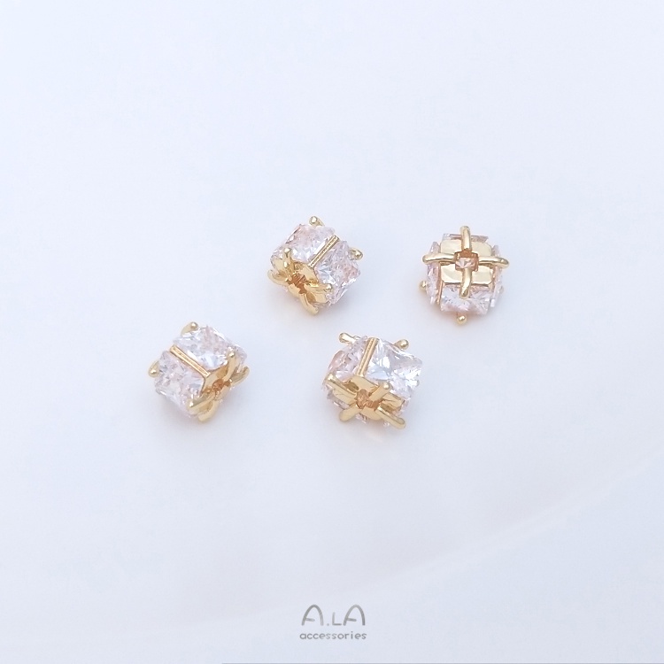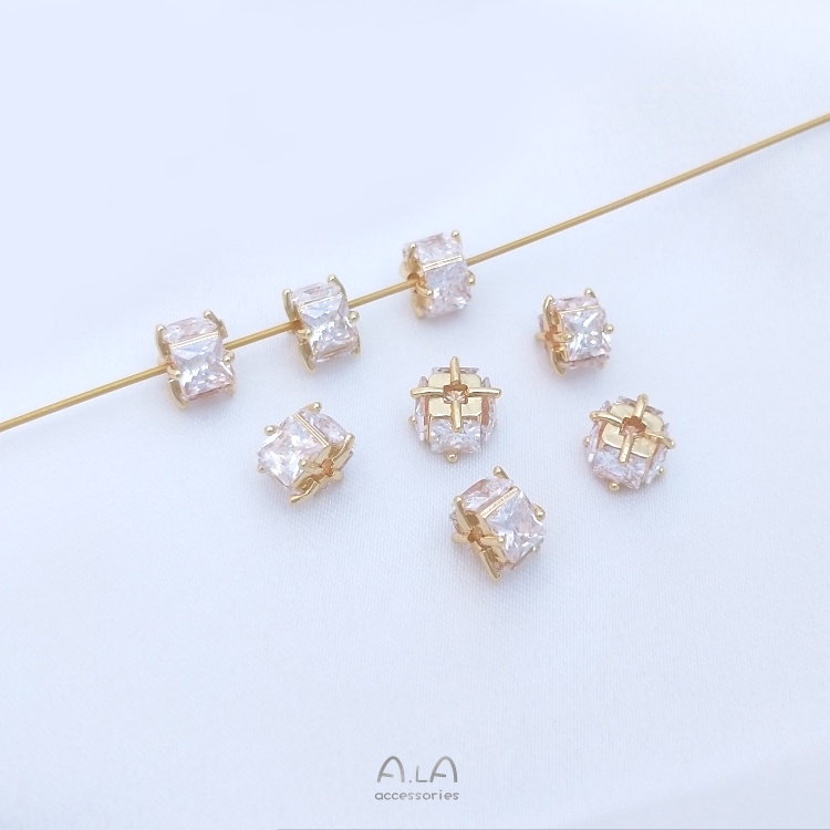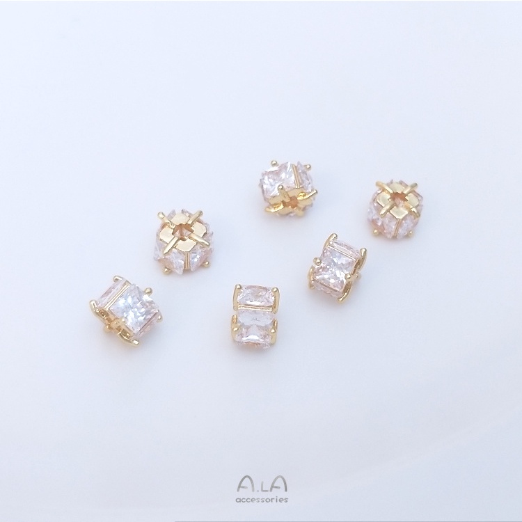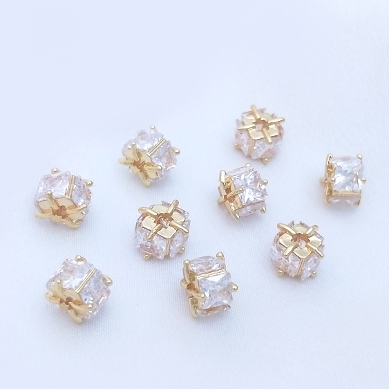 宏雲Hongyun-Ala-0801–14K包金保色鑲嵌四面方鋯6mm方形隔珠手工diy手鏈耳環首飾品配件6mm四面方鋯隔珠 1個OthersHongYun飾品配件批發零售