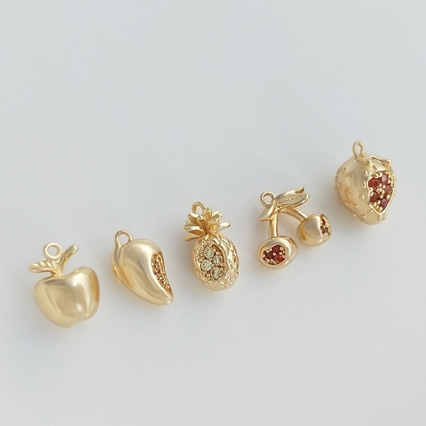 宏雲Hongyun-ala- 14K包金保色鑲彩鋯立體水果系列吊墜芒果草莓櫻桃diy手鍊飾品掛件苹果亮面 7.5×10.5mm 1个|芒果镶锆 6.5x11mm 1个|樱桃镶锆 10x11mm 1个|菠萝镶锆 6.3x12mm 1个|草莓镶锆 8.3×11.5mm 1个|榴莲镶锆 8.3×12.5mm 1个|火龙果镶锆 8.5x13mm 1个Charms, Pendants & OrnamentsHongYun飾品配件批發零售