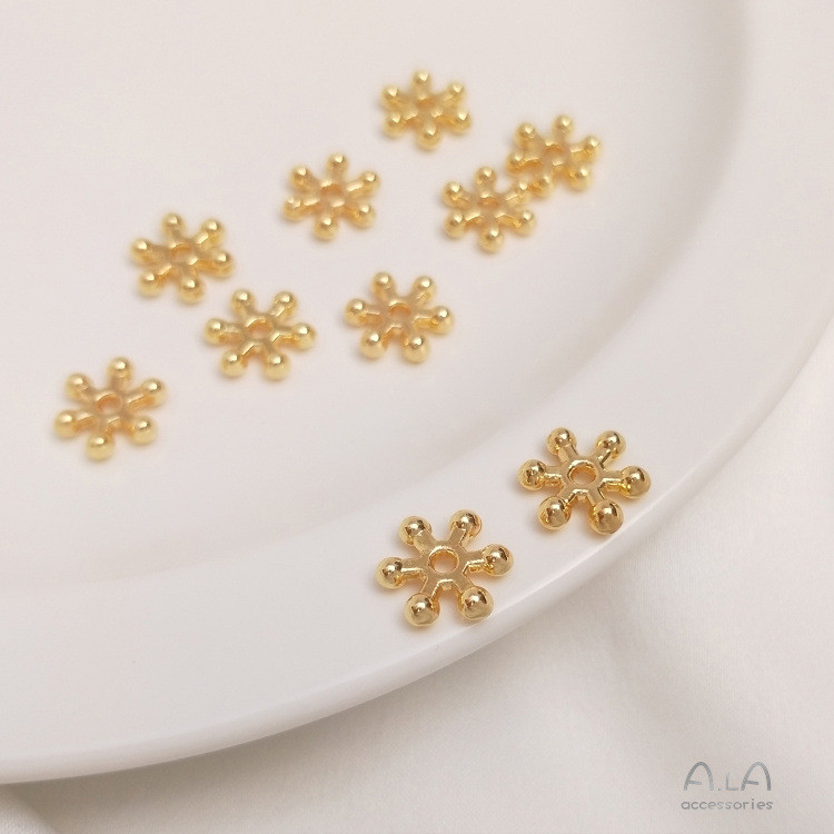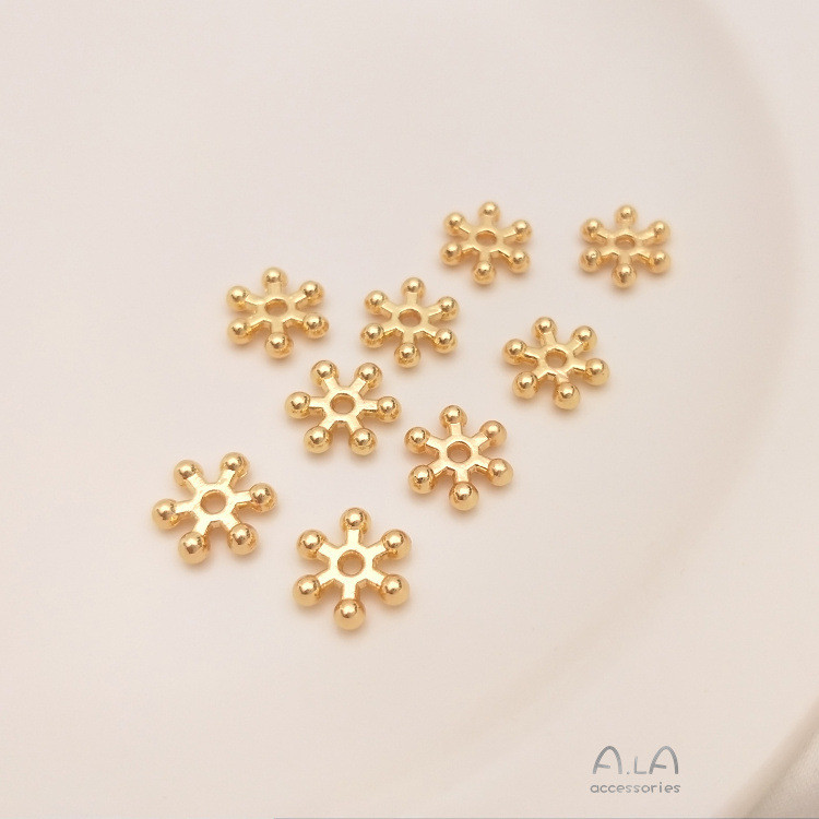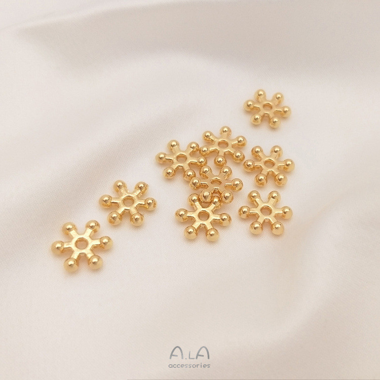 宏雲Hongyun-Ala新品-14k包金保色鍍真金9mm大雪花片隔珠手工diy手串隔片手鍊飾品配件9mm大雪花片(10個)|9mm大雪花片【50個】HongYun飾品配件批發零售