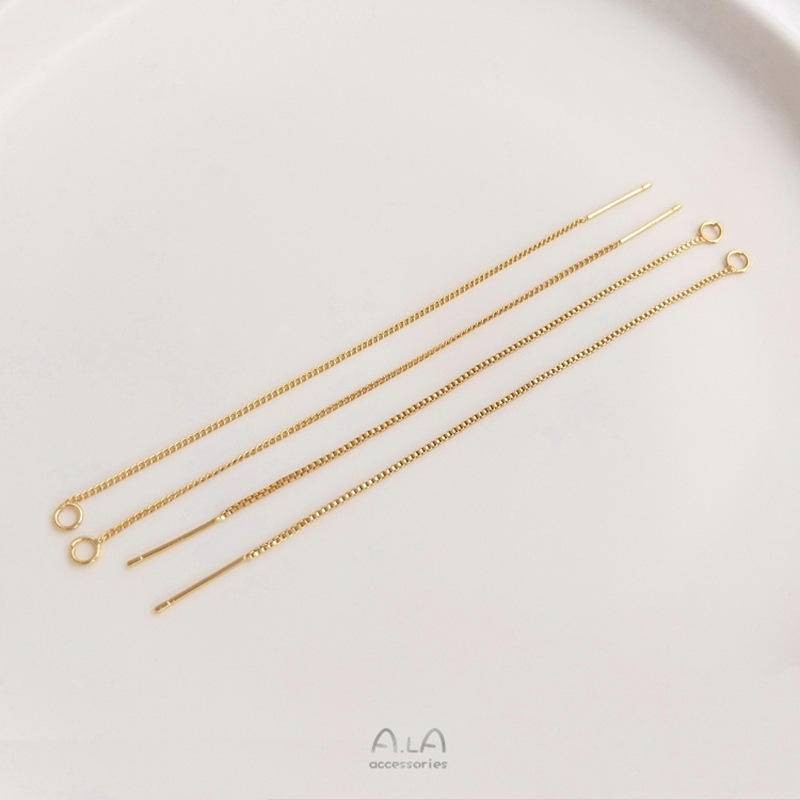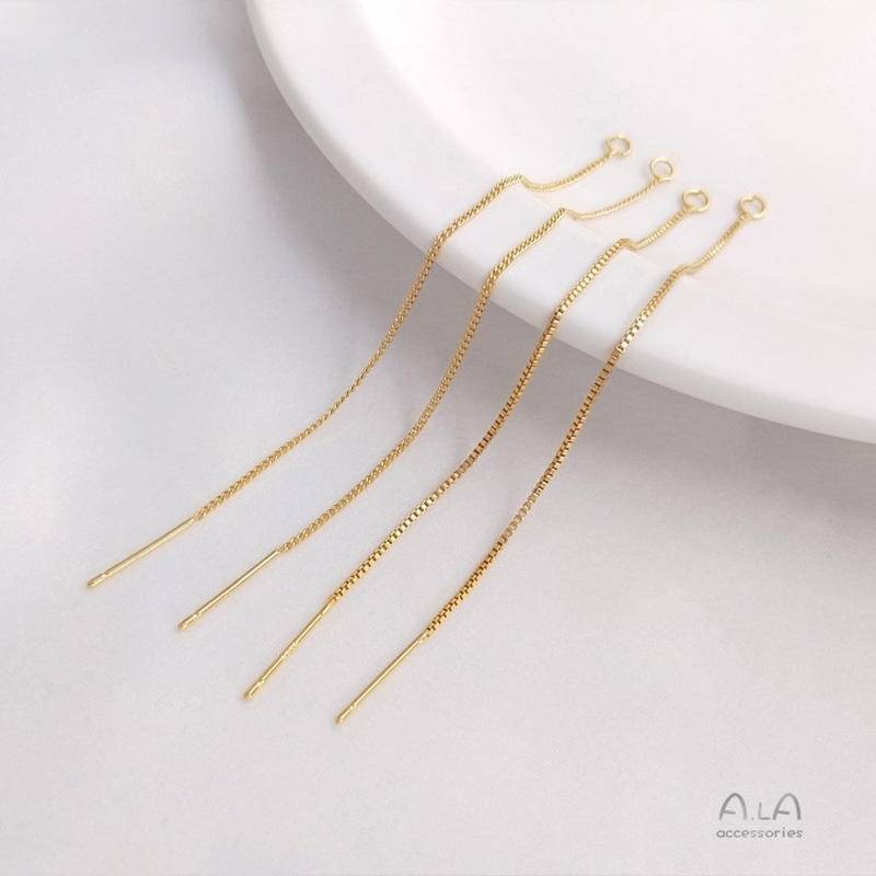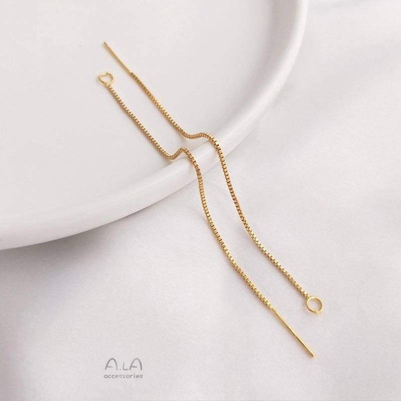 宏雲Hongyun-Ala新品-保色14k包金耳線s925銀針耳釘帶吊側身盒仔鏈耳線手工diy耳飾配件0.9mm側身鏈銀針耳線1對 2根|1.0mm盒子鏈銀針耳線1對 2根HongYun飾品配件批發零售