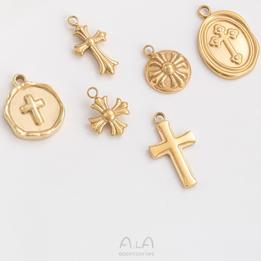 宏雲Hongyun-Al- 鈦鋼真空鍍14K真金保色十字架系列吊墜diy耳環手鍊項鍊首飾品掛件1#十字架10x12mm 1个|2#十字架8x16mm 1个|3#十字架10x17mm 1个|4#十字架12.5x18mm 1个|5#十字架12x15mm 1个|6#十字架9.5x12mm 1个Charms, Pendants & OrnamentsHongYun飾品配件批發零售