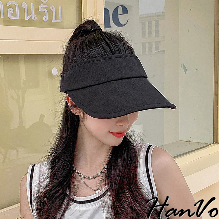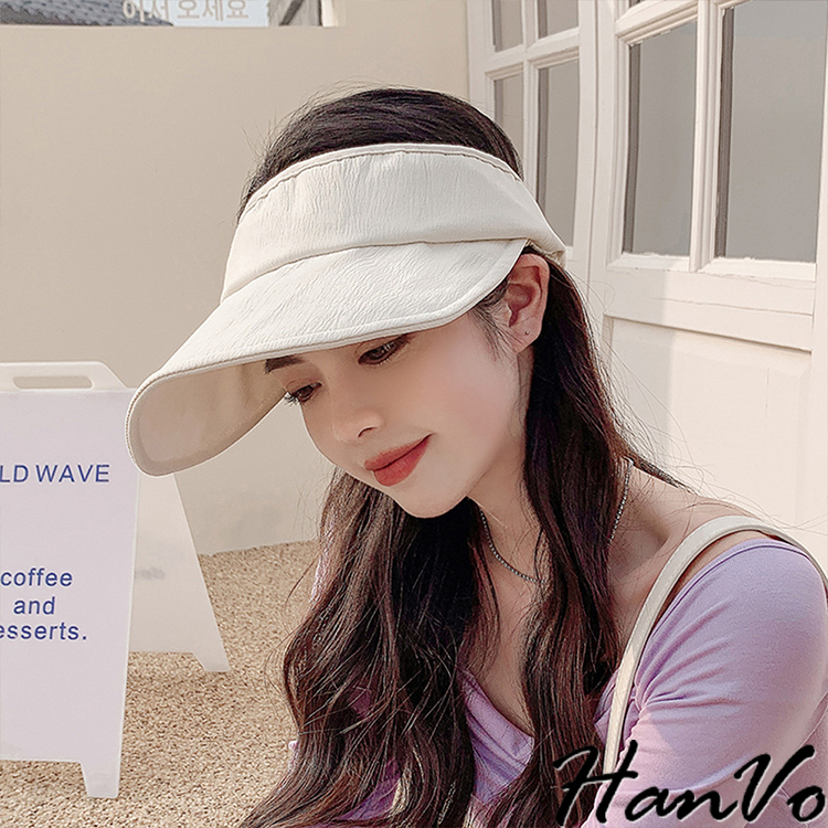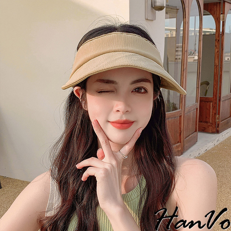 【HanVo】夏季出遊雙面運動遮陽帽 日韓休閒百搭造型遮陽鴨舌帽 女生衣著 女生配件 C01-8165黑色|卡其|米杏HanVo Wear Collection