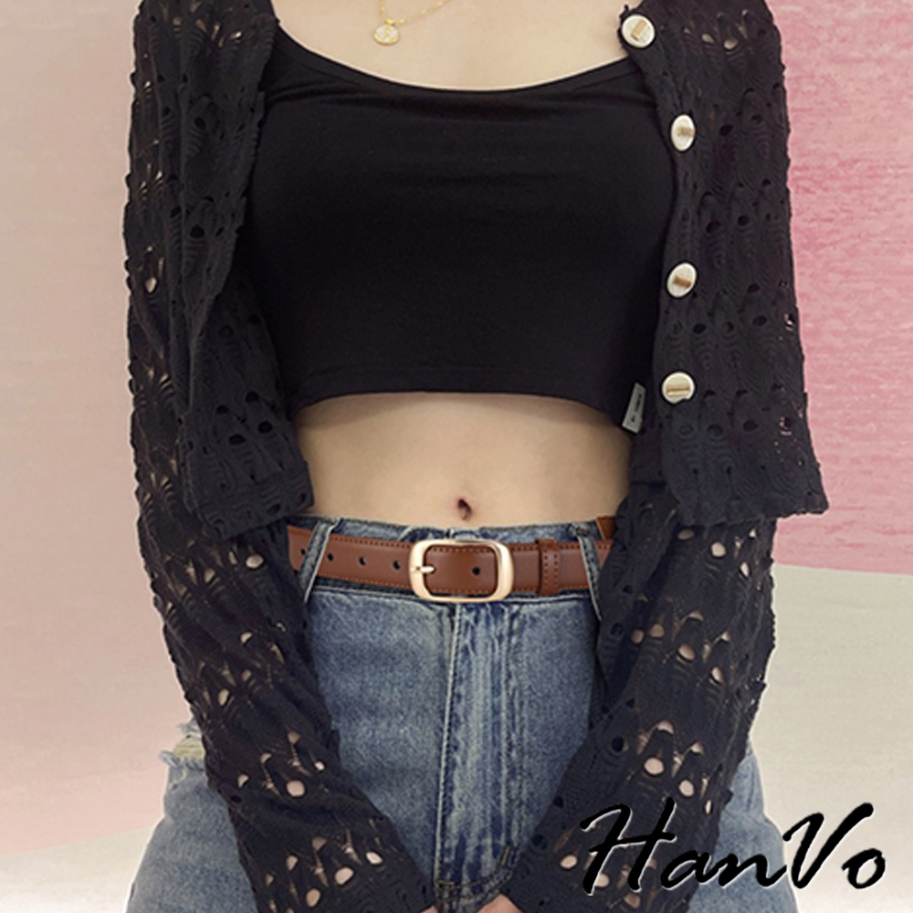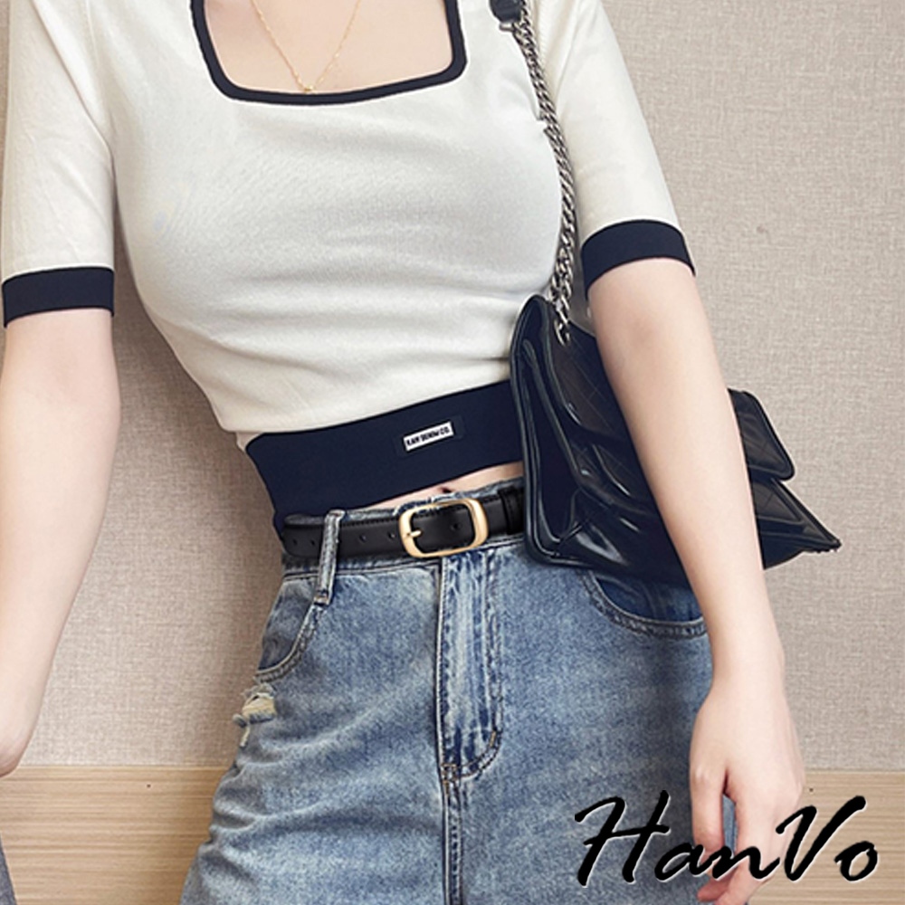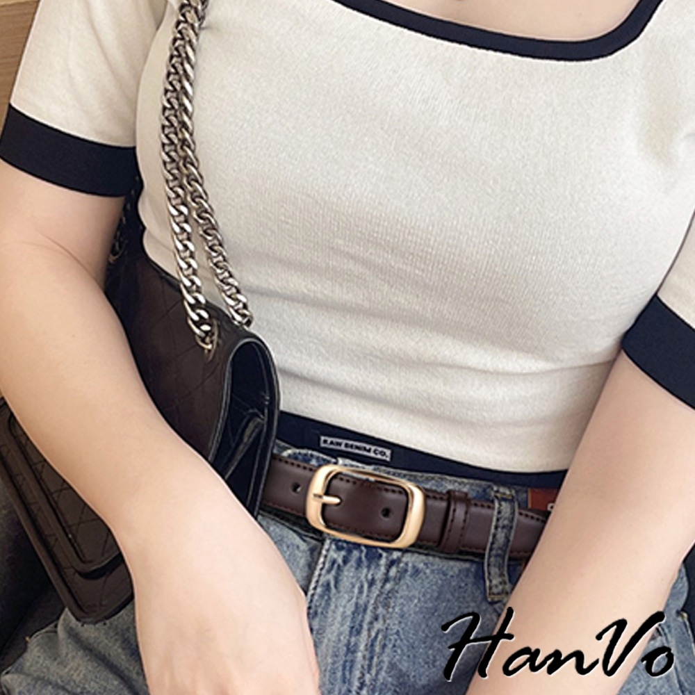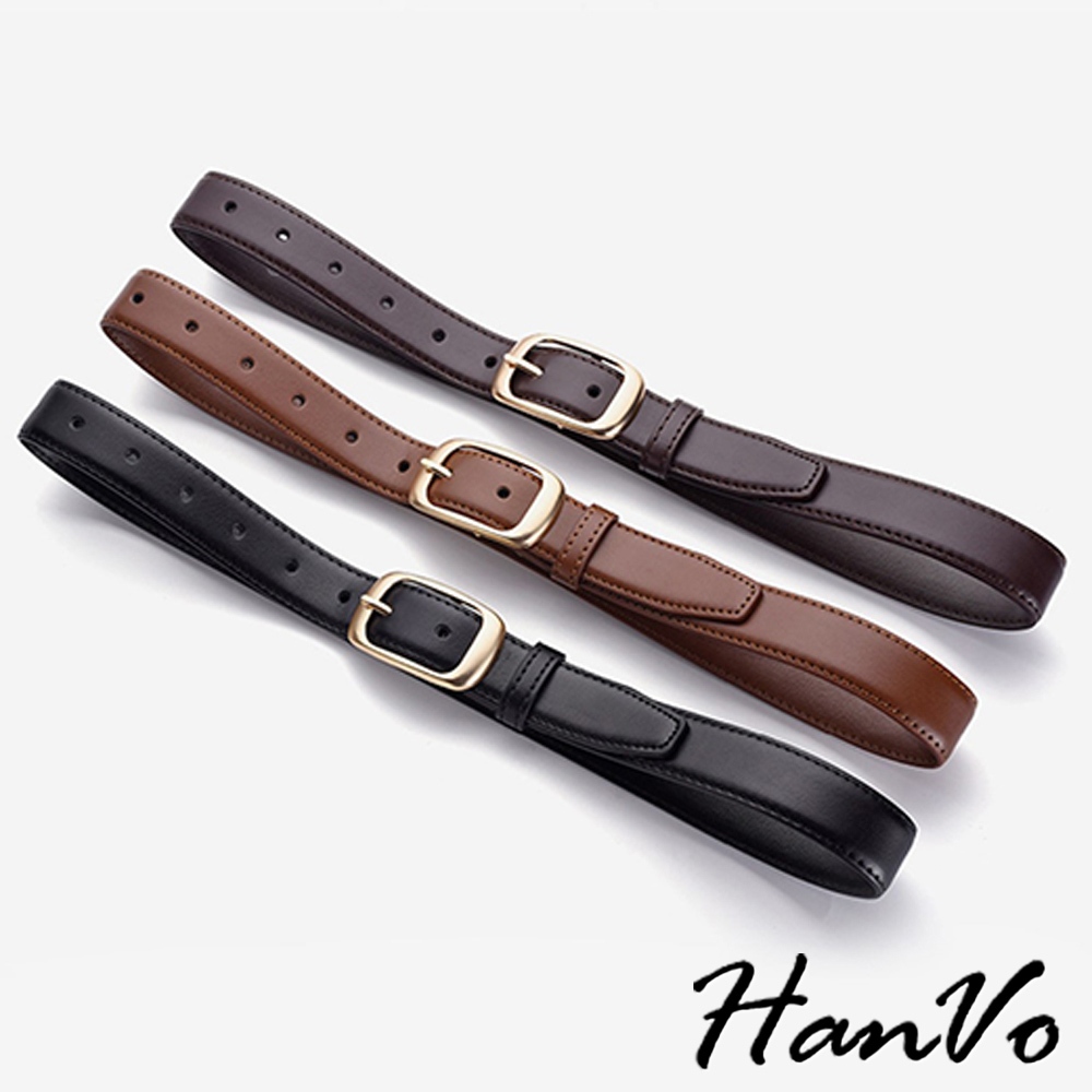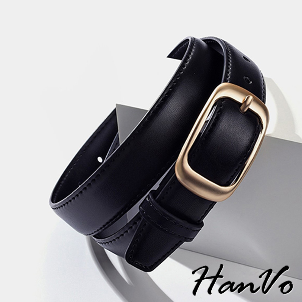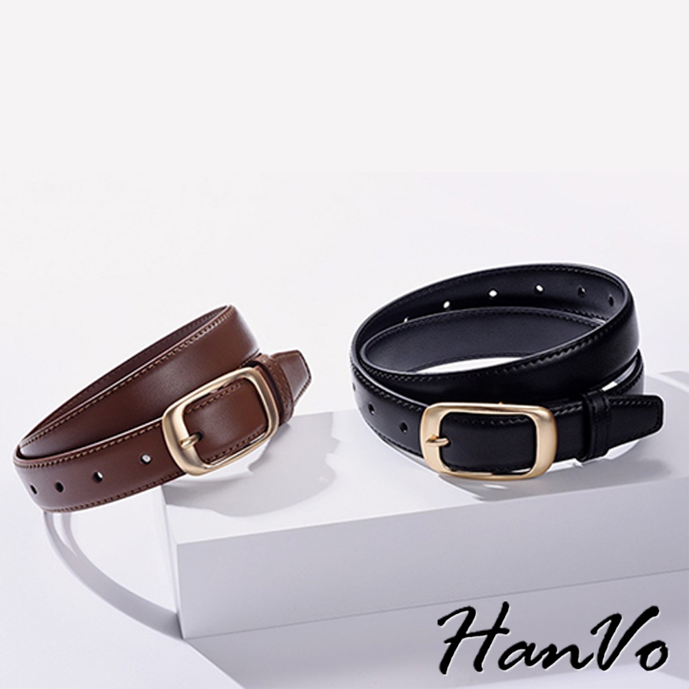 【HanVo】方框金屬扣時尚皮帶 優選二層牛皮牢固耐用 簡約設計 韓系配件 女生配件 C06-8188黑色|咖色|棕色HanVo Wear Collection