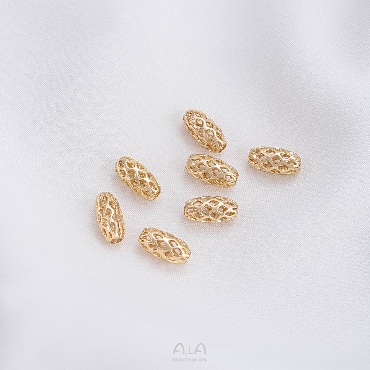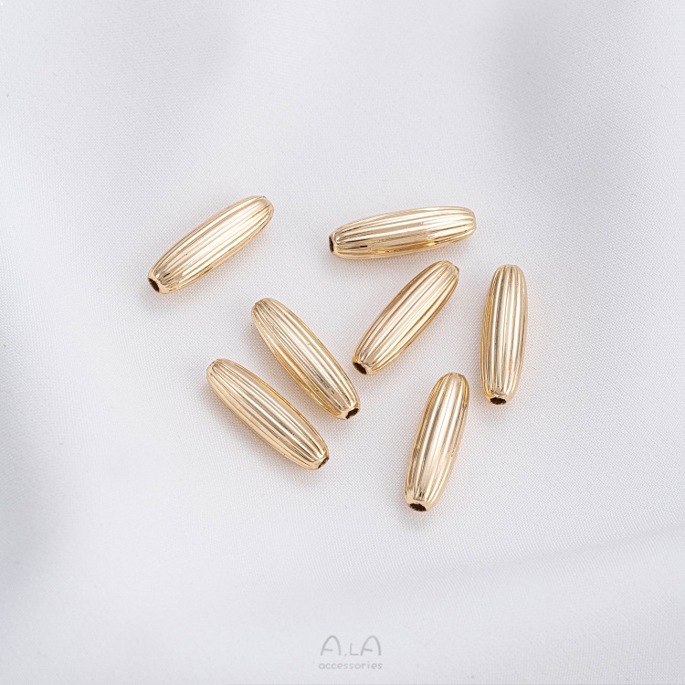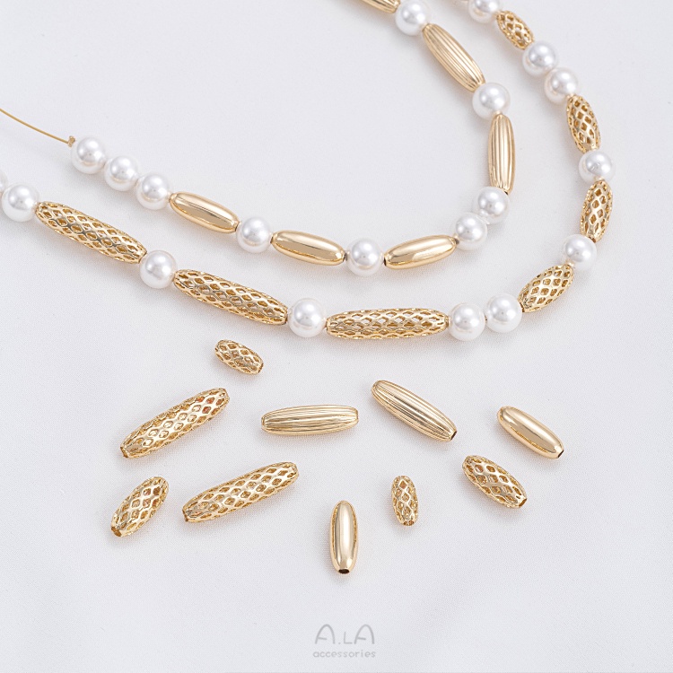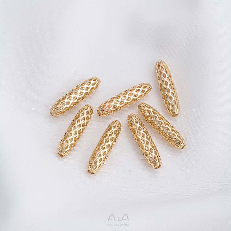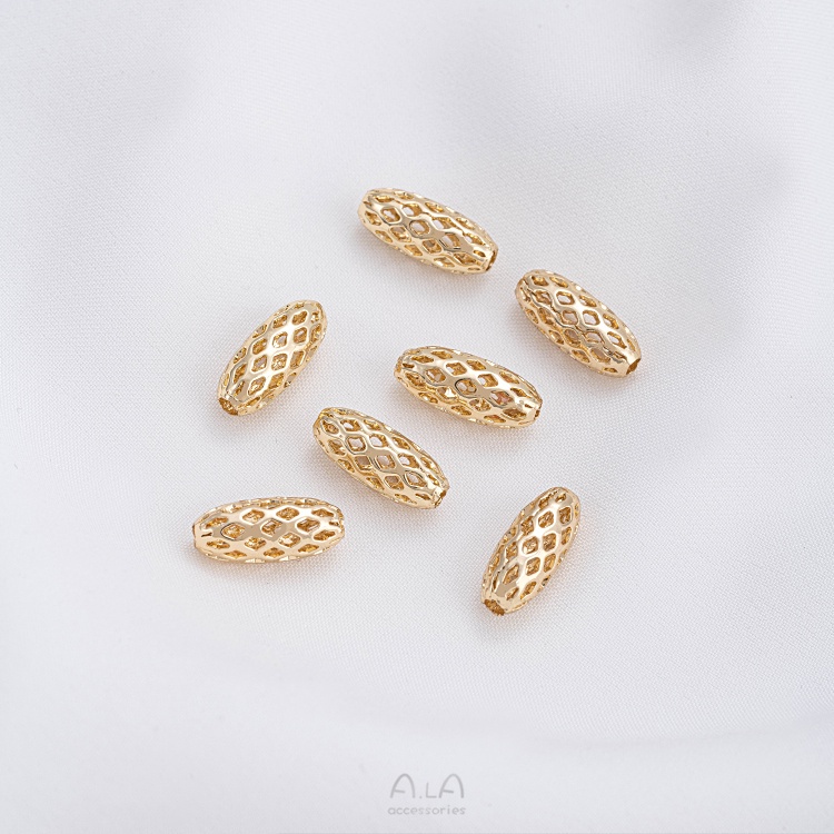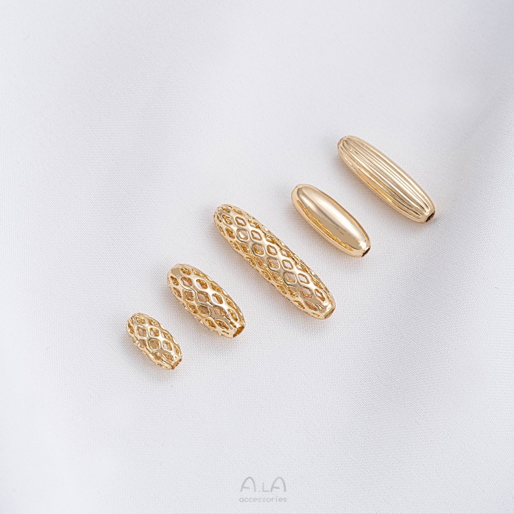 宏雲Hongyun-Ala-1105- 保色14K包金復古鏤空橢圓長條形米珠手作耳環飾品diy手鍊項鍊配飾5x19mm 镂空米珠(5个)|4x8mm 镂空米珠(5个)|4x12mm 光面米珠(5个)|5x11mm 镂空米珠(5个)|5x15mm 瓜纹米珠(5个)Charms, Pendants & OrnamentsHongYun飾品配件批發零售